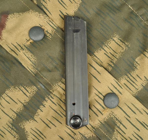 Original Item: Genuine rare WW2 Luger magazine. Body is extruded steel with blue-black finish. Correct black Bakelite floorplate. Excellent condition. Marked P.08, fxo, with two inspection stamps of an eagle/37. This is the correct original magazine for the rare "Black Widow" Luger pistol of WW2
