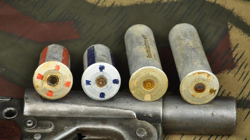 Original Item: Genuine WW2 German 26.5-mm flare signals that produce either a colored smoke streamer or smoke ball. These are the flares that would have been used in IMA’s Leucht Pistole 42 during the War. The cartridge case is made of aluminum. The case may have a label identifying the signal type, signal color, the manufacturer, the date of manufacture, and the expiration date. This labeling has faded on some flares.