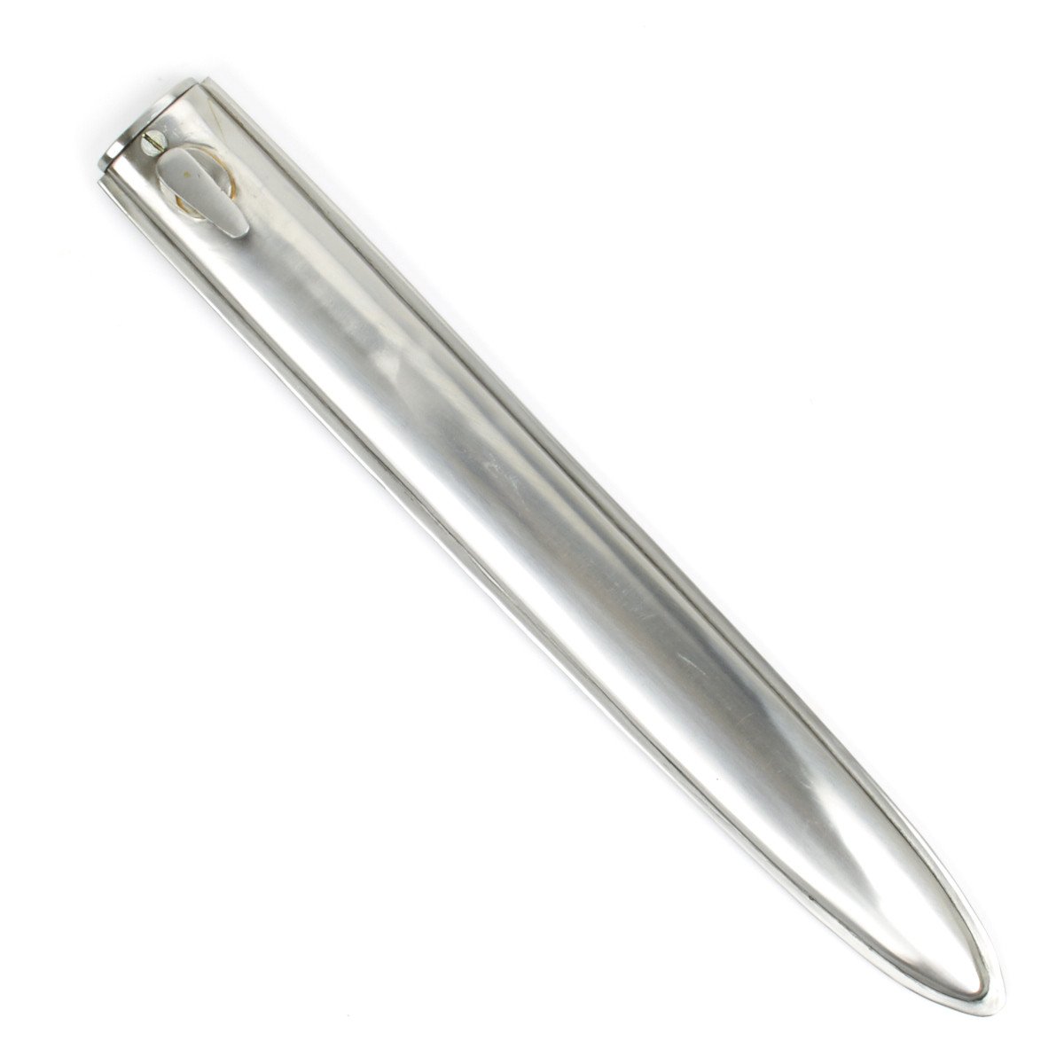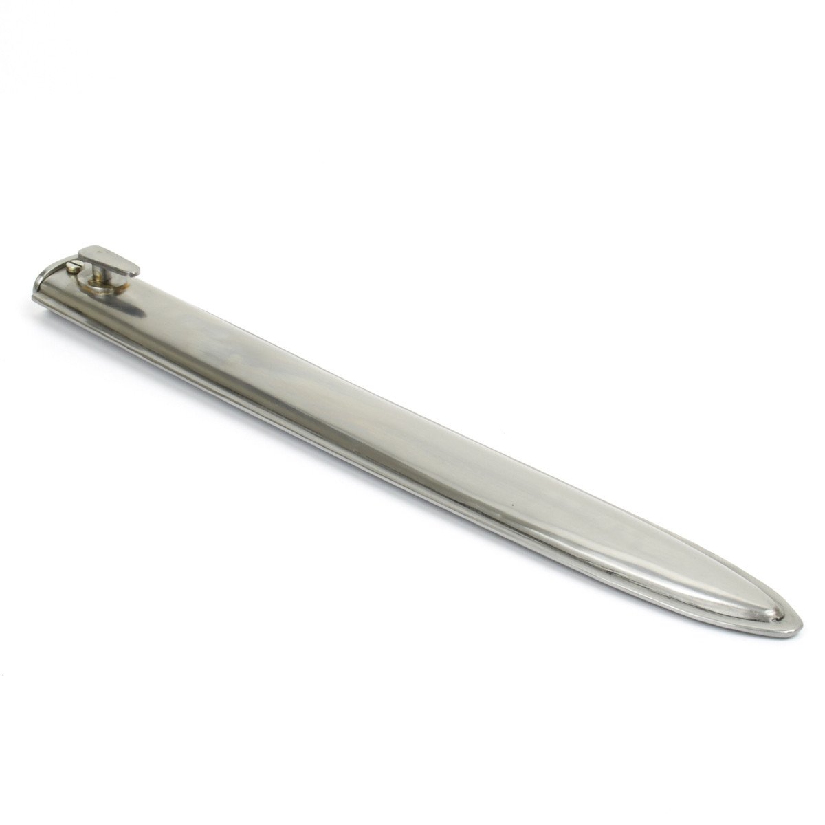 New Made Item: An incredible high quality bright steel production of the Classic WW1 German Ersatz bayonet scabbard commonly referred to as the "FAG" scabbard. This fine reproduction is almost identical to an original; manufactured with a bright steel finish, later to be painted by infantryman with the color of his surroundings. Featuring all steel construction, perfect dimensions and an exceptional look and sturdy feel.
