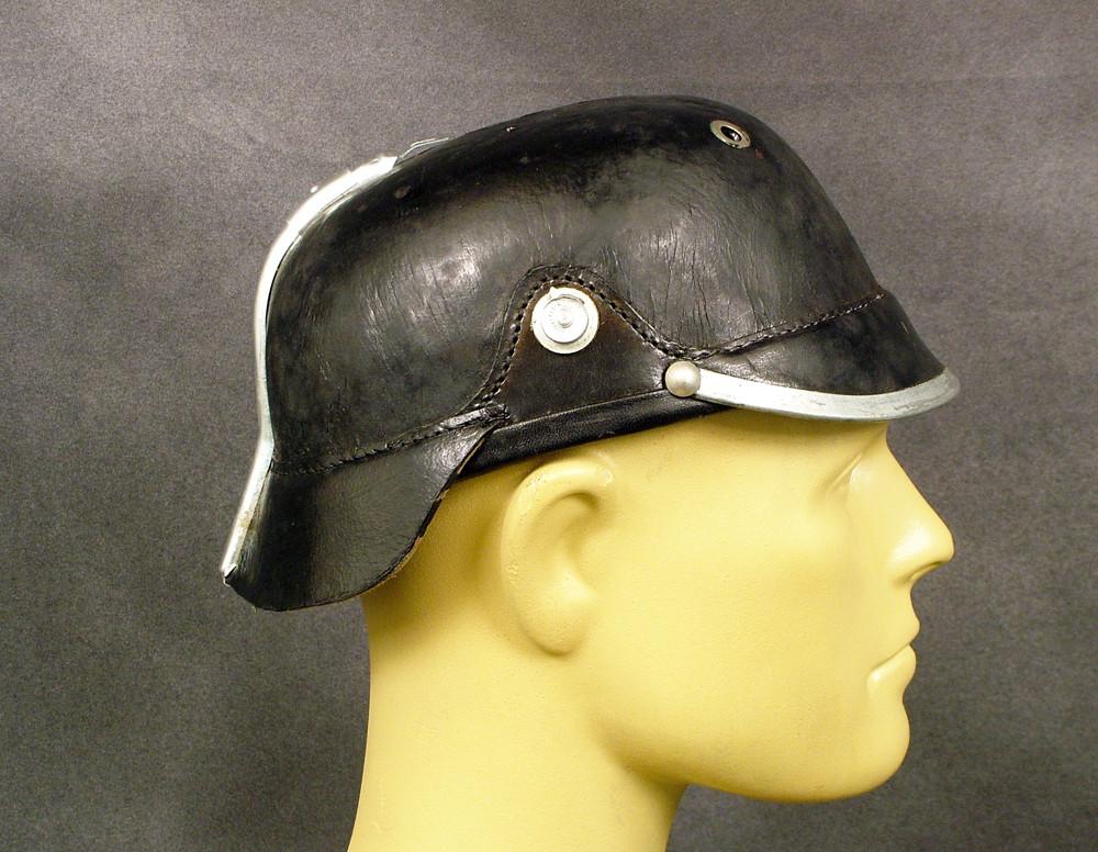 New Made Item: Very few available: Closeout Special! Found in the warehouse are a very small supply of these German WW1 style black leather Picklehaulben Helmet bowls with white metal mounts and interior leather sweat bands for you to complete with Helmet Plate, Spike Assembly and chin scales that are available on countless websites. Good quality with correctly stitched leather peak and neck bills, these are ideal for mounting old mounts from helmets from which the leather has disintegrated. Few only, from an abandoned project of the early 1990?s.