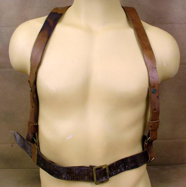 ORIGINAL ITEM: Produced during WWI these German "Y" Straps are very similar to those used by German Wehrmacht (Army) units. Original WWI production, very rare today, these are ideal for collectors. Designed to attach to the waist belt in the center of the back the two straps go over the shoulders and attach to the "D" rings on the back of the triple ammunition pouches worn on the waist belt either side of the buckle to assist with the weight of the ammunition.