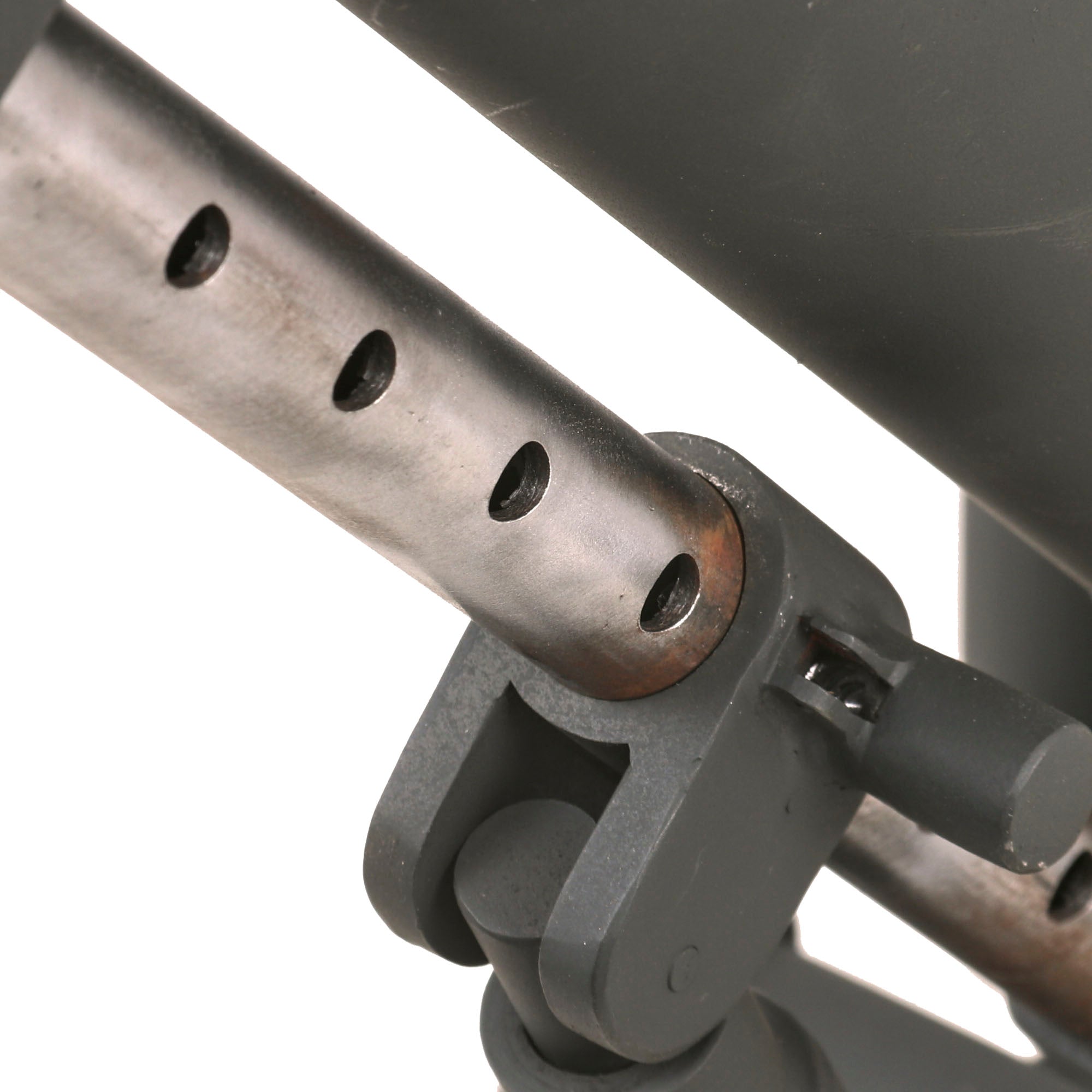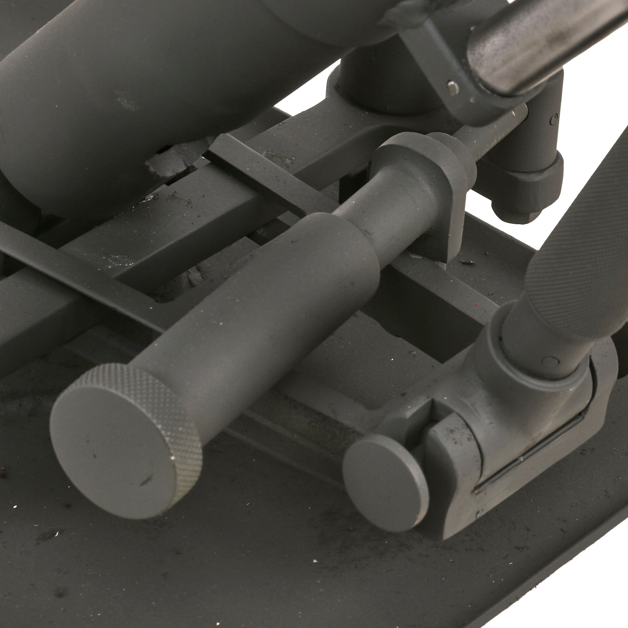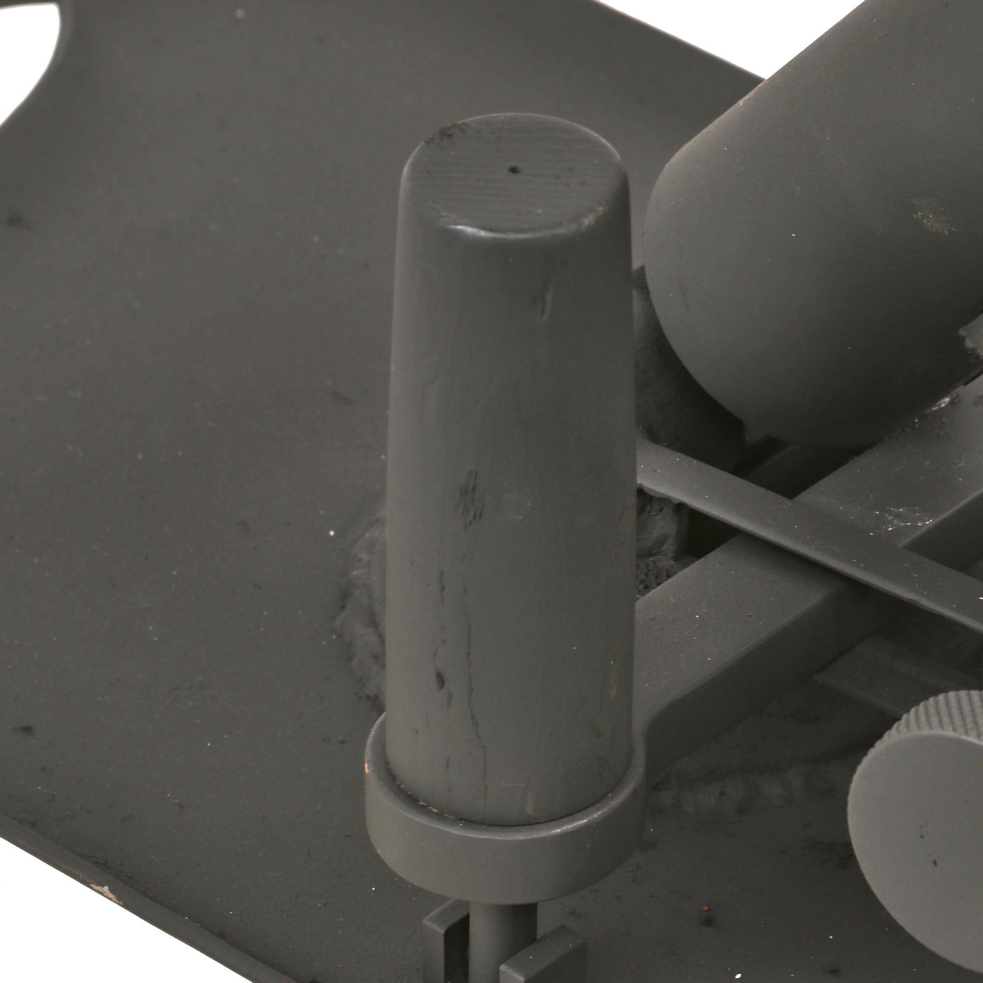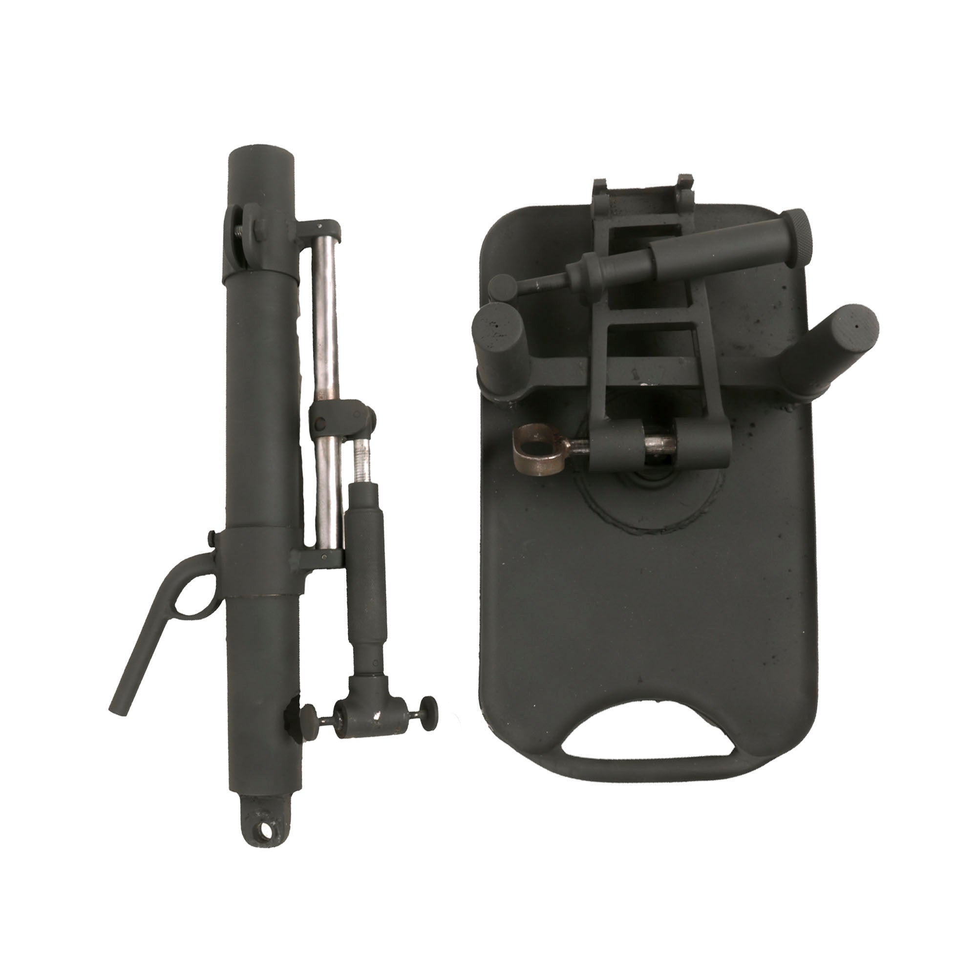 German 5cm Leichter Granatwerfer 36 Mortars are EXTREMELY scarce on the collector's market, and we have only ever had one or two in the past. Given their rarity, someone elected to make this fantastic 1:1 scale fabricated steel replica, which is extremely well executed. It looks to be made mostly of steel, constructed around a 3.8cm completely inert steel tube. The replica mortar even has functional traverse and elevation controls, and the squeeze buttons at the bottom of the elevation support even push in, allowing the display mortar to be folded up as an original. The pin going through the base of the tube can also be removed, allowing the tube to be detached from the base. This must have taken a very long amount of time to construct!