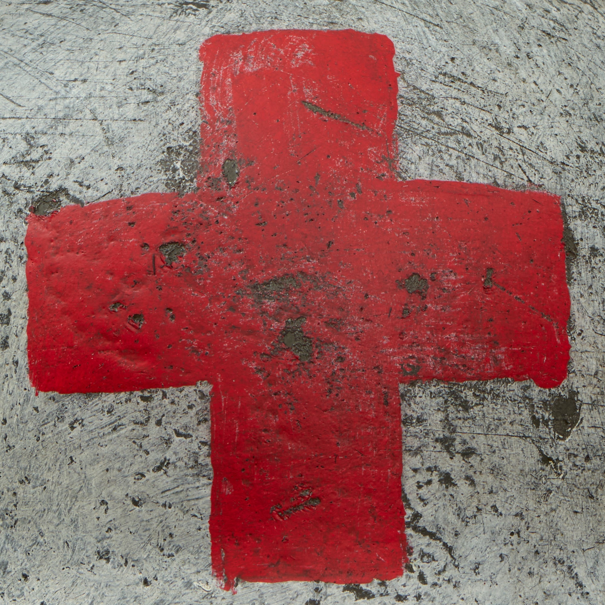 - This helmet represents those who bravely faced combat with bright red crosses seen by all.