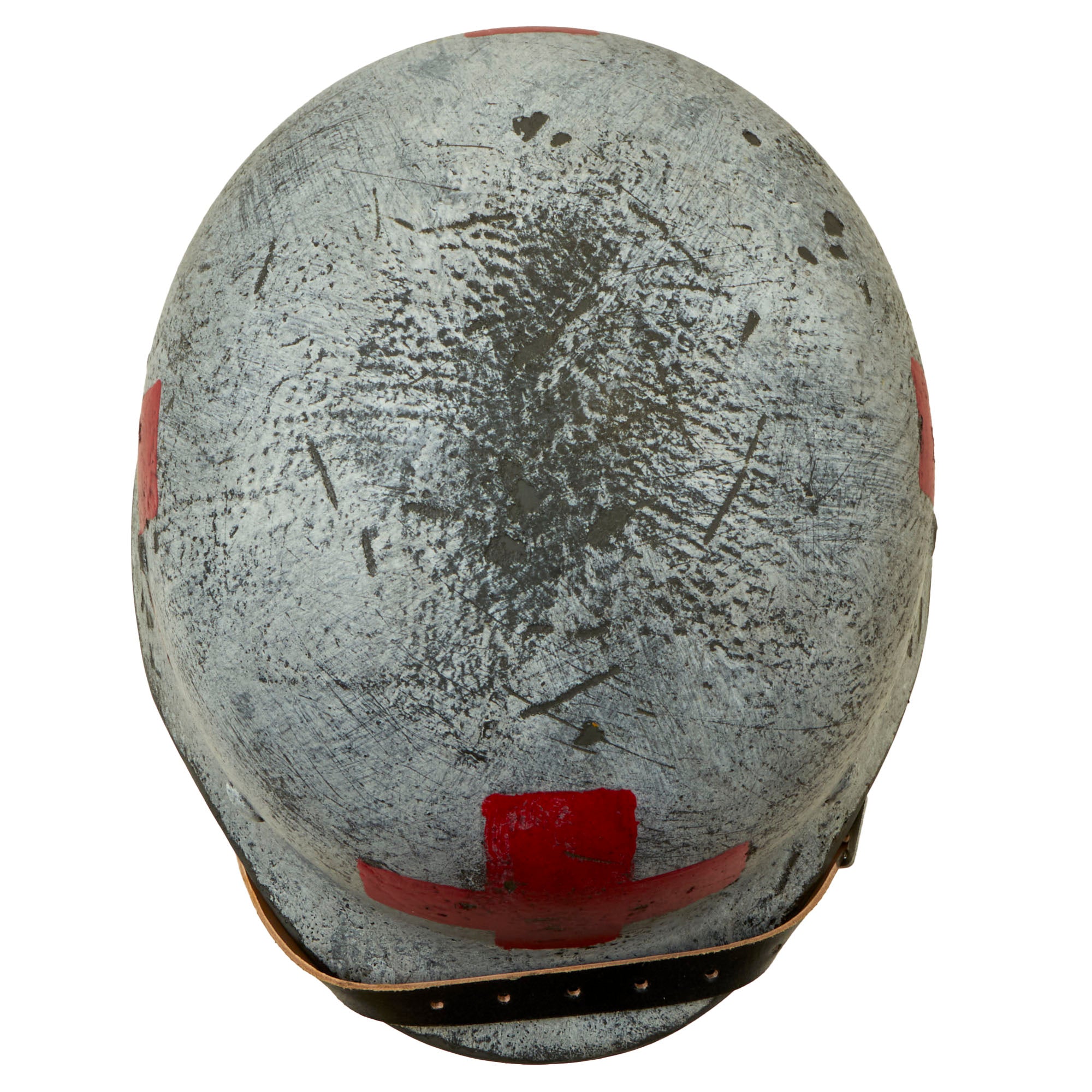 Notable history of the WWII M35 SS "Kampfgruppe Peiper" Ardennes Winter Medic Helmet-