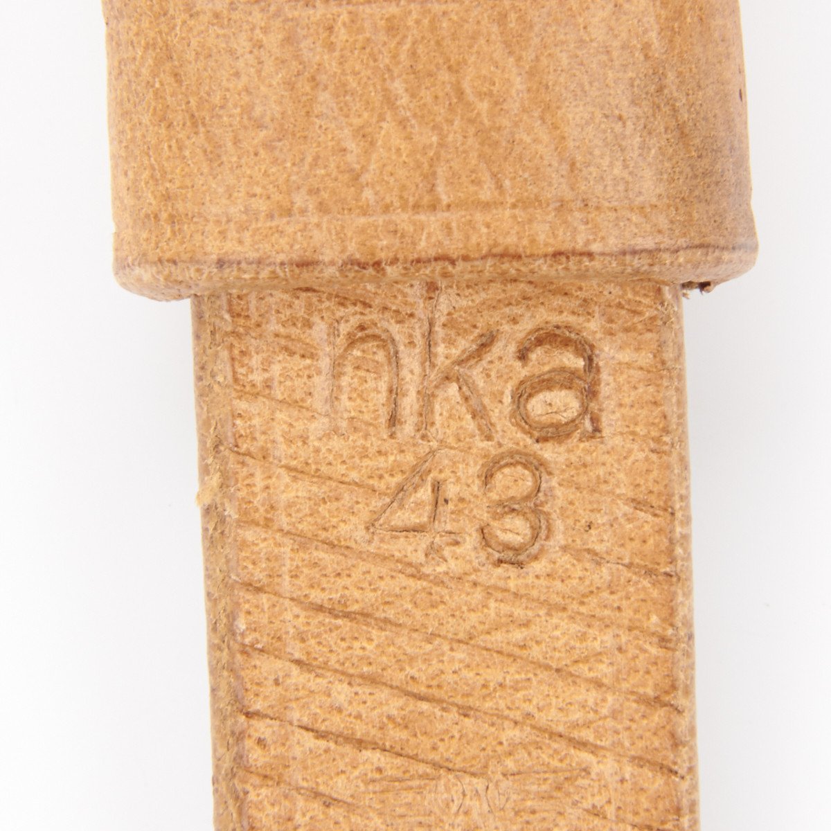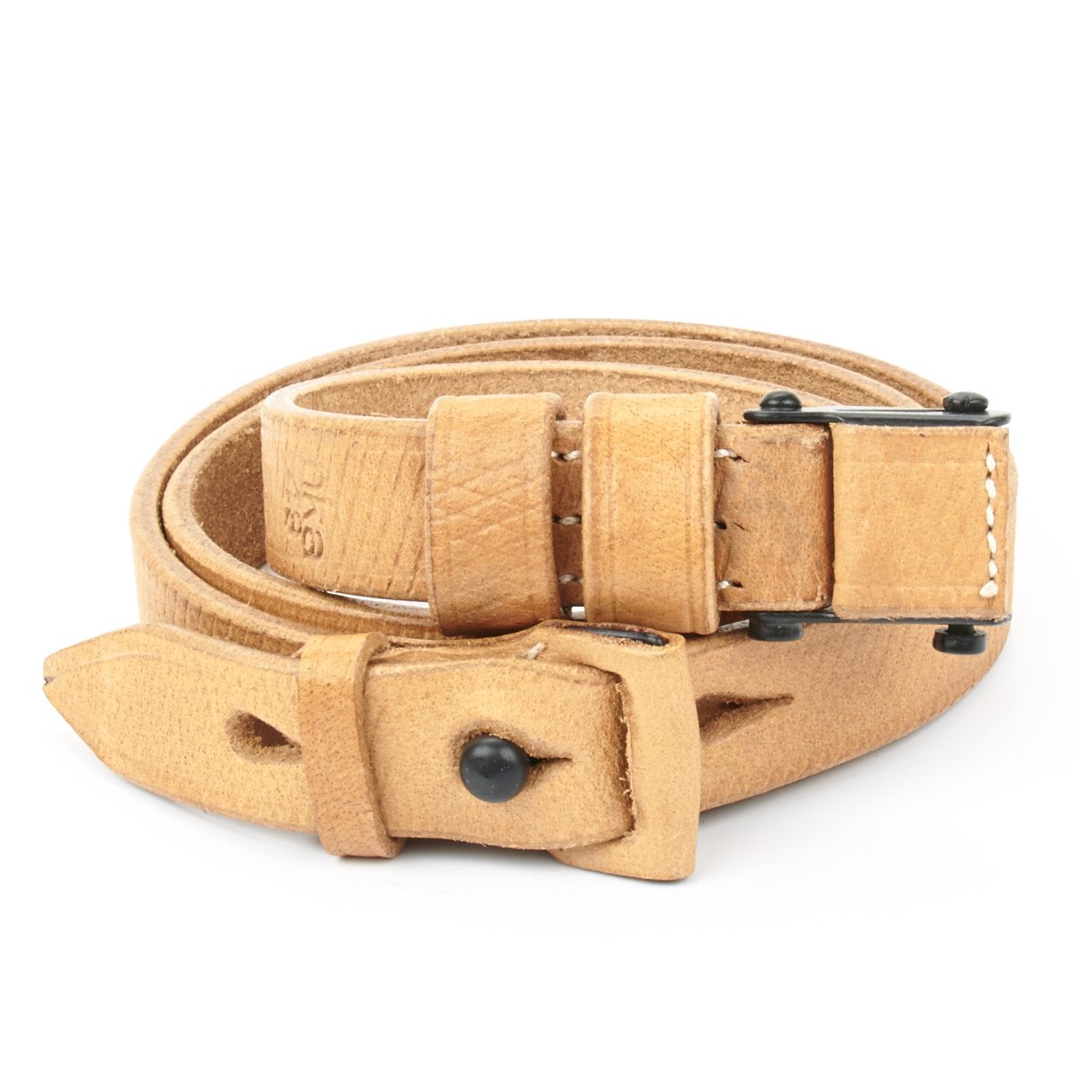 New Made Item: This is a top quality Mauser K98k natural tan leather rifle sling. Our stunning reproduction is correctly cross-hatched complete with steel buckle and keeper. Well marked with replicated maker and date markings. Correct for all German WWII Rifles. Fabulous!