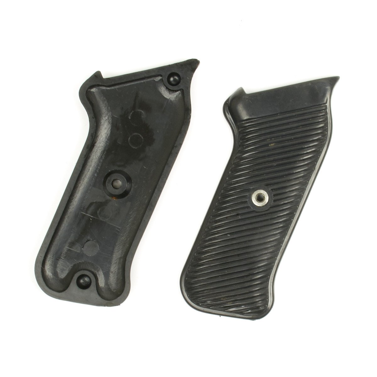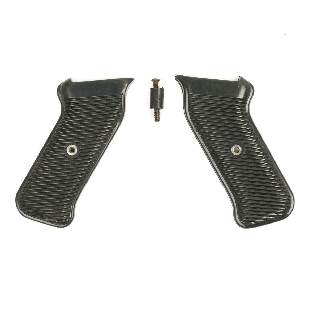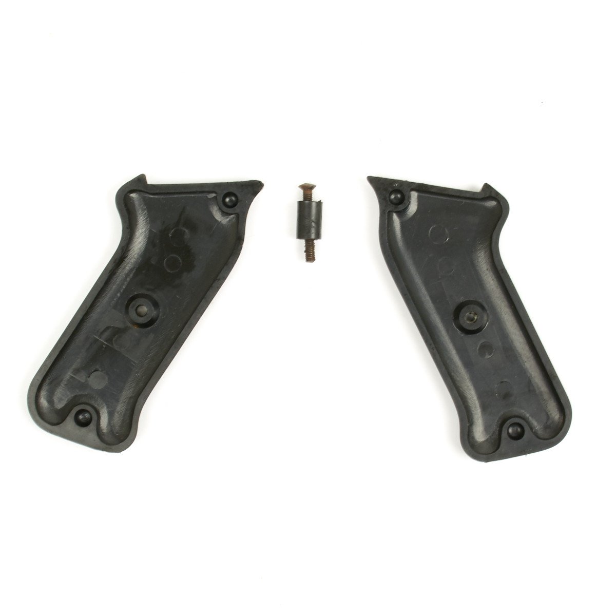 New Made Item: High quality reproduction black "bakelite" (plastic) grip panel set complete with center cross bolt for the German WWII MP 40 Sub Machine Gun. Note: Some fitting may be required due to manufacturing variations.