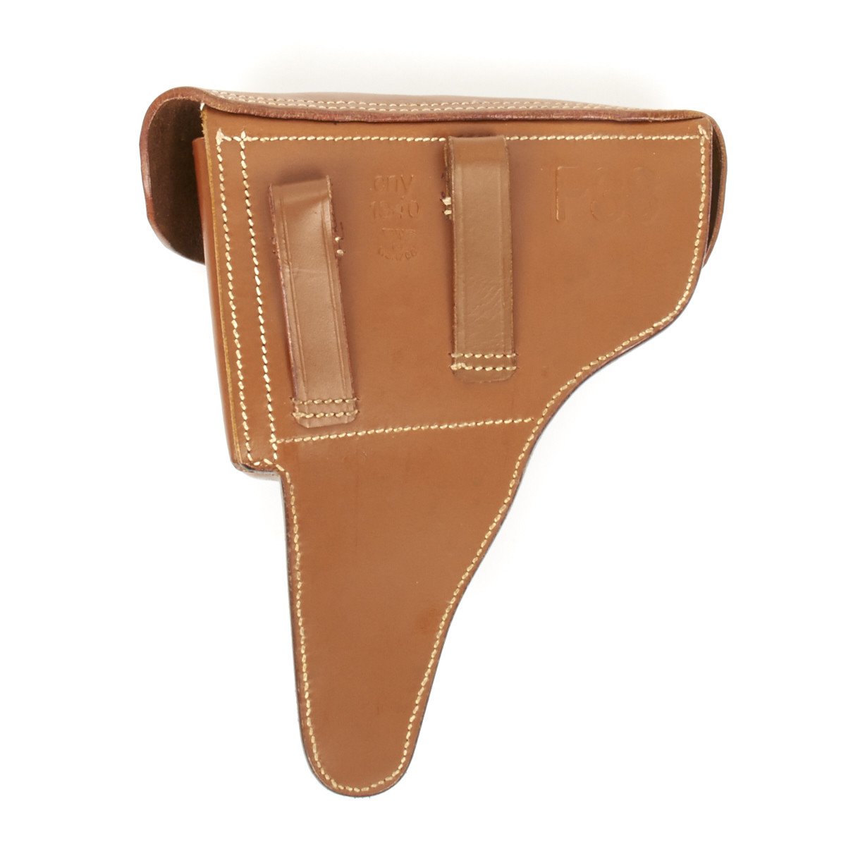 Original examples of this holster are nearly impossible to find today. Perfect for reenactors or just a good home for your P-38 pistol. Excellent quality!