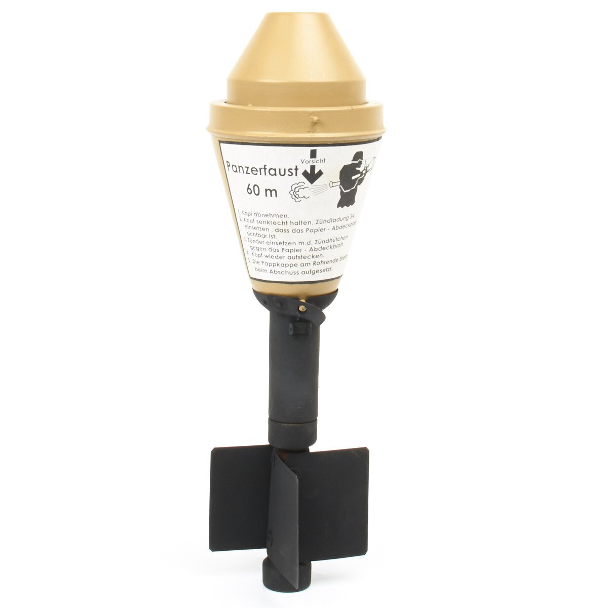 So what is different about this panzerfaust 60 from our previous offering? In a word- everything! The tube is the correct weight and length, the sight and trigger assembly are almost identical to the original, all the stenciling is correct, the rocket is two-piece with a correct fin assembly that is black (never was geldbraun) and fits seamlesly into the launcher. There just isn't a better to be found anywhere. Period.