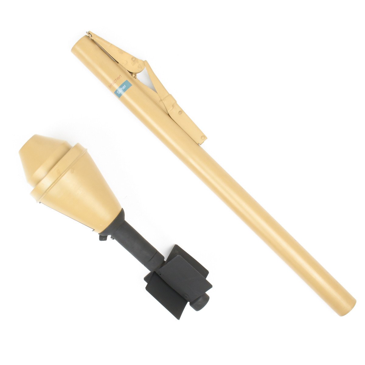 The is a new production run, we call it "Collector Grade Quality" because it is the very best reproduction Panzerfaust "Pipe Launcher" and inert projectile rocket on the market today. All totally inert and but faithful reproduction of this very crude late WW2 last ditch weapon. These anti-tank weapons saw some success against the invading Allied Armies. Basically intended to be fired and thrown away, very few original examples survive.