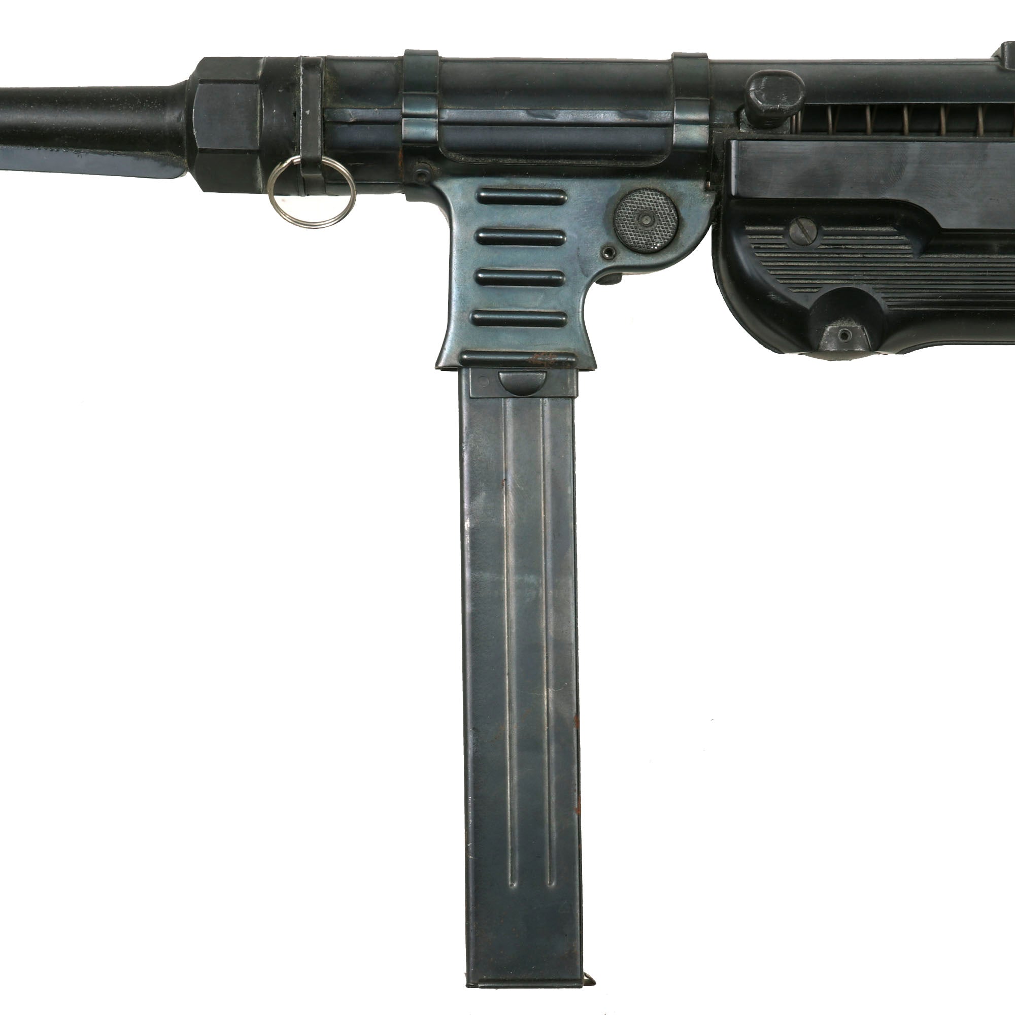 The MP 40 (Maschinenpistole 40) is a submachine gun chambered for the 9×19mm Parabellum cartridge. It was developed in Germany and used extensively by the Axis powers during World War II.