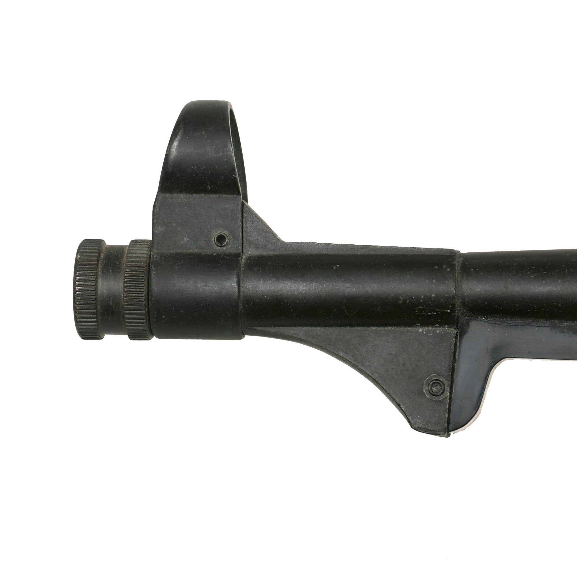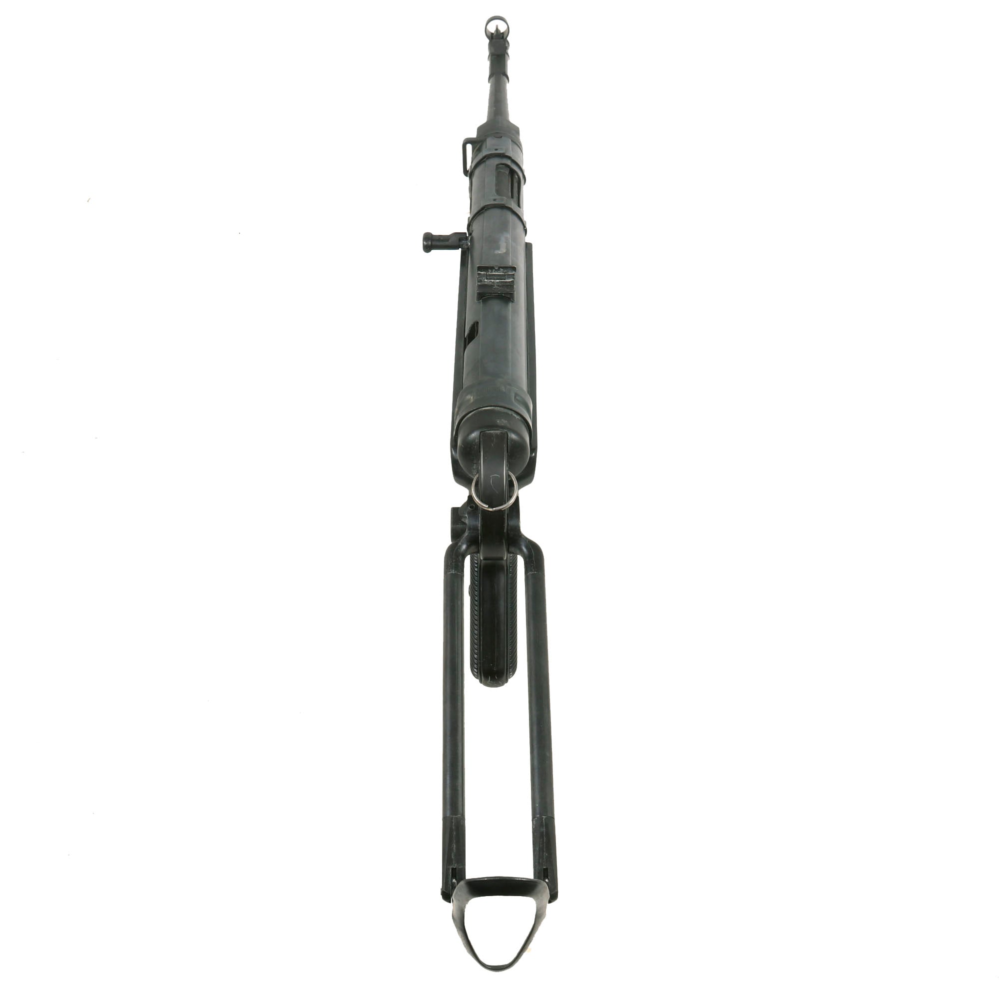 It still has a great finish on the metalwork, showing very little wear, with maybe just a bit of oxidation and patination in areas. There is also some scratching to the lower plastic housing from the folding stock. Mechanically it feels solid and cycles correctly, with a great aged look. It really looks the business and feels almost the same as the real thing! Great for reenactors and collectors alike.