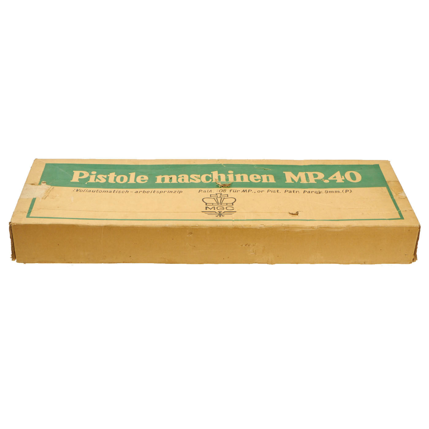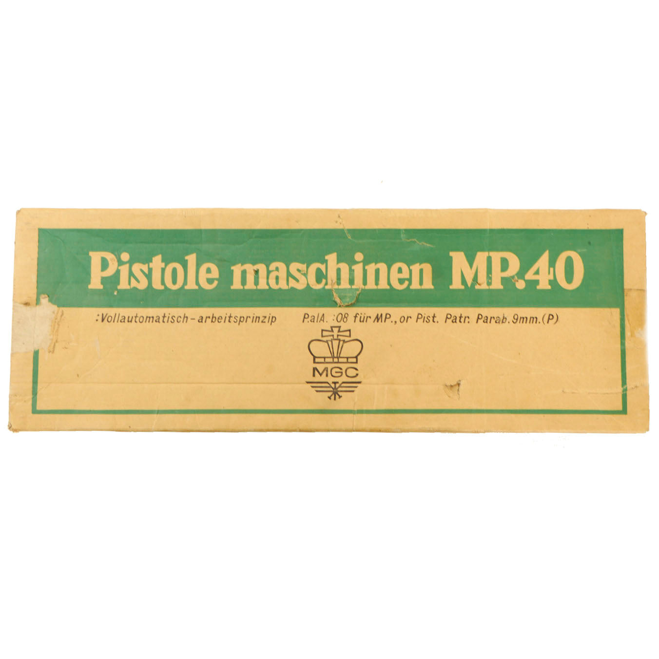 Vintage Replica Item: Only One Available. This is a fantastic extremely high quality German WWII Maschinenpistole 40 / MP 40 "Plug Fire" replica gun, made by the well-known Model Gun Corporation (MGC) of Japan. This is, by far, the absolute best condition example of one of these MGC MP40s we have ever had the pleasure of offering! It appears to have never been fired, or handled very much at all! Comes with excellent condition original packaging materials!