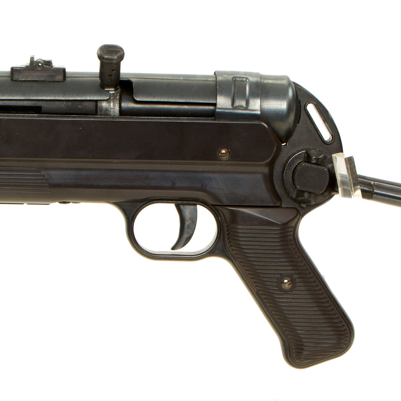 These are incredible replicas that are almost superior to a dummy gun made from an original MP-40 Parts Kit, which generally is welded. These models disassemble just like the originals. One can cock the bolt with the charging handle, pull the trigger, and the bolt slams forward! Unlike a much more expensive dummy gun that has none, if any, moveable parts. On an MGC, everything works!