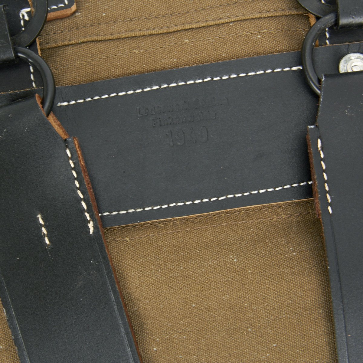 The construction this reproduction is second to none. Correct cotton canvas with genuine leather tabs, steel fittings and correct full size, just like they were made in WW2!
