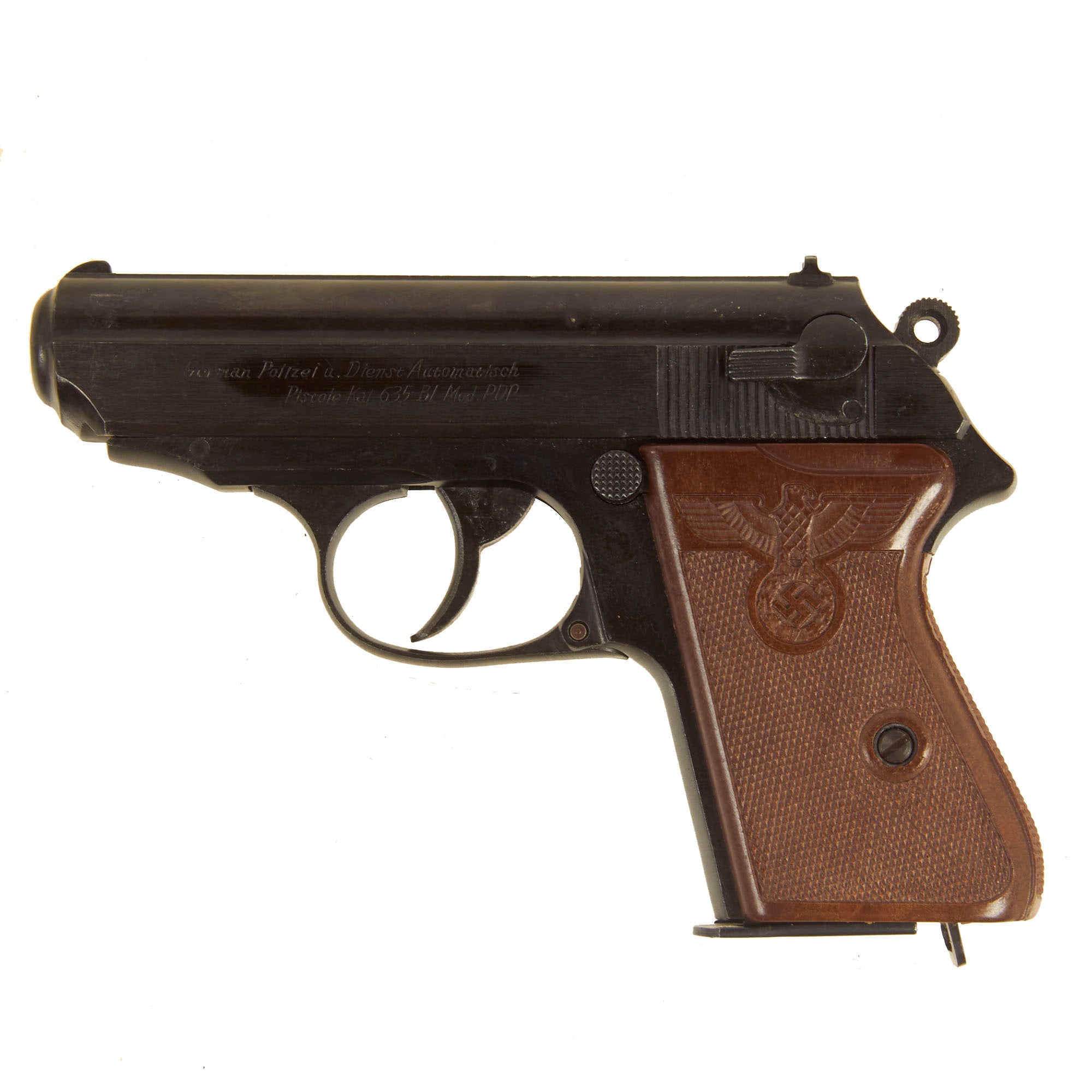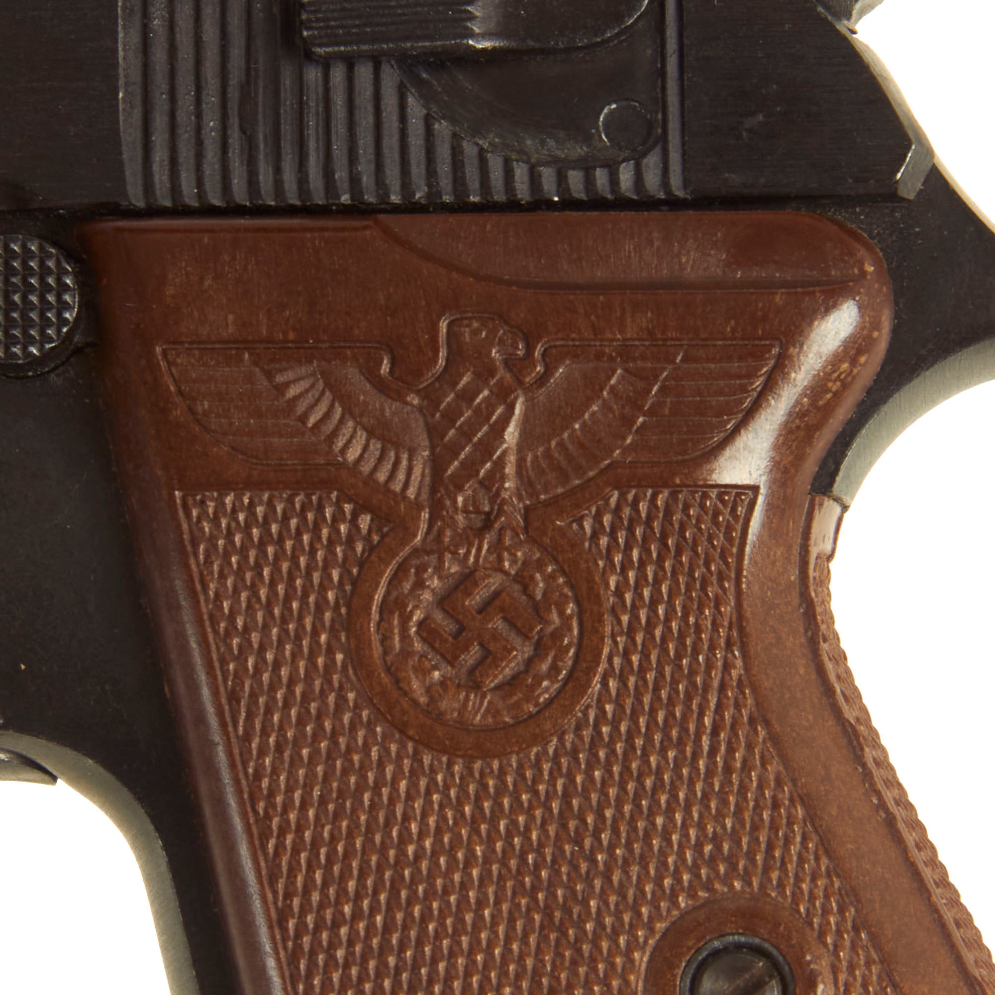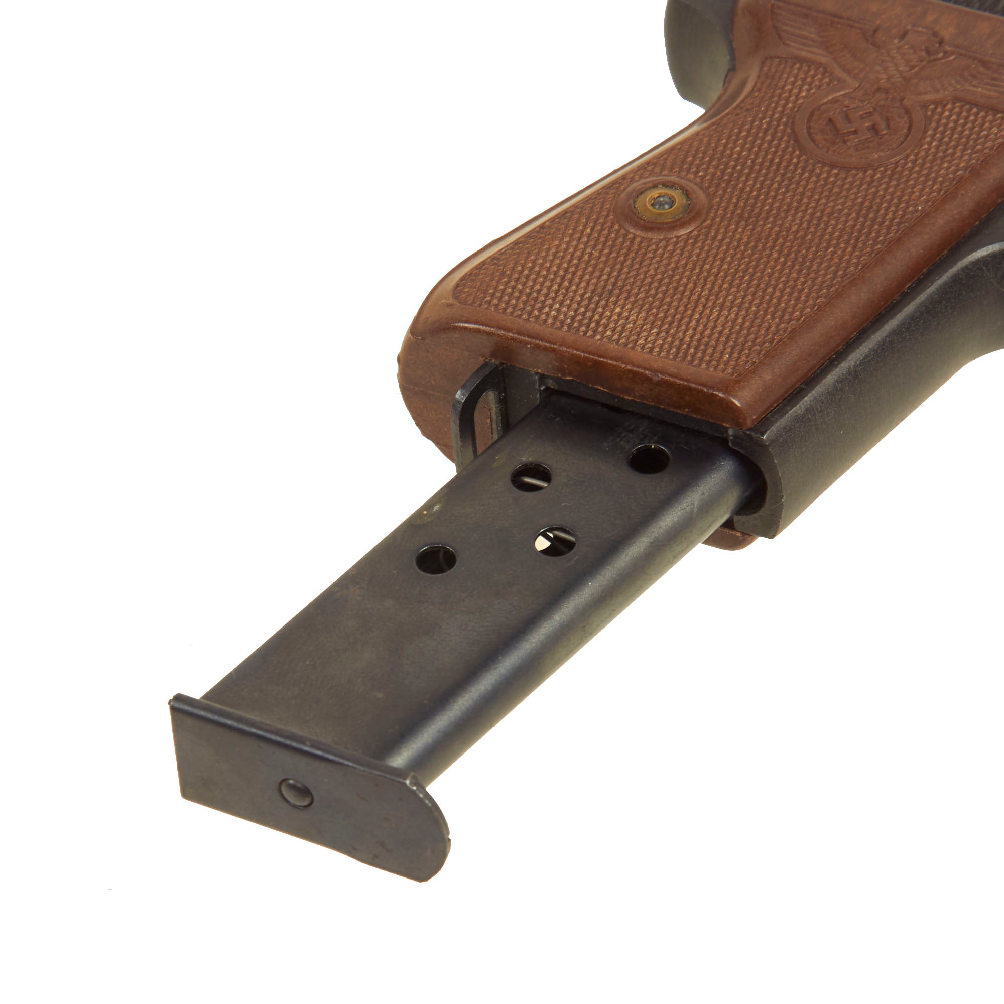 Vintage Replica Item: Only One Available. This is a fantastic high quality German WWII Walther PPK "Plug Fire" replica gun, made by the well-known Model Gun Corporation of Japan. This is, by far, one of the absolute best examples of one of these collectible MGC Pistols we have ever had the pleasure of offering! Comes with original box, packing materials and nine original cartridges, which are near impossible to find on their own!