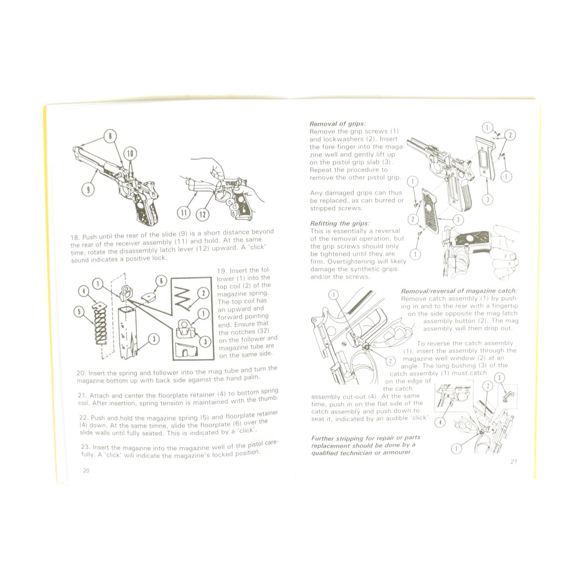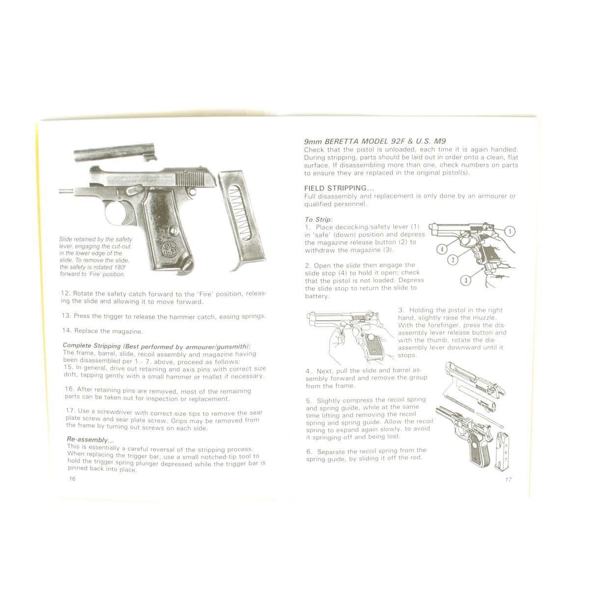 Along with stripping from the US M9 manuals, this also contains an overview of the origin, development & issue of the Italian models. Exploded parts drawings, specifications, accessories & maintenance information. A handy reference for shooters & collectors alike, of the various Beretta models.