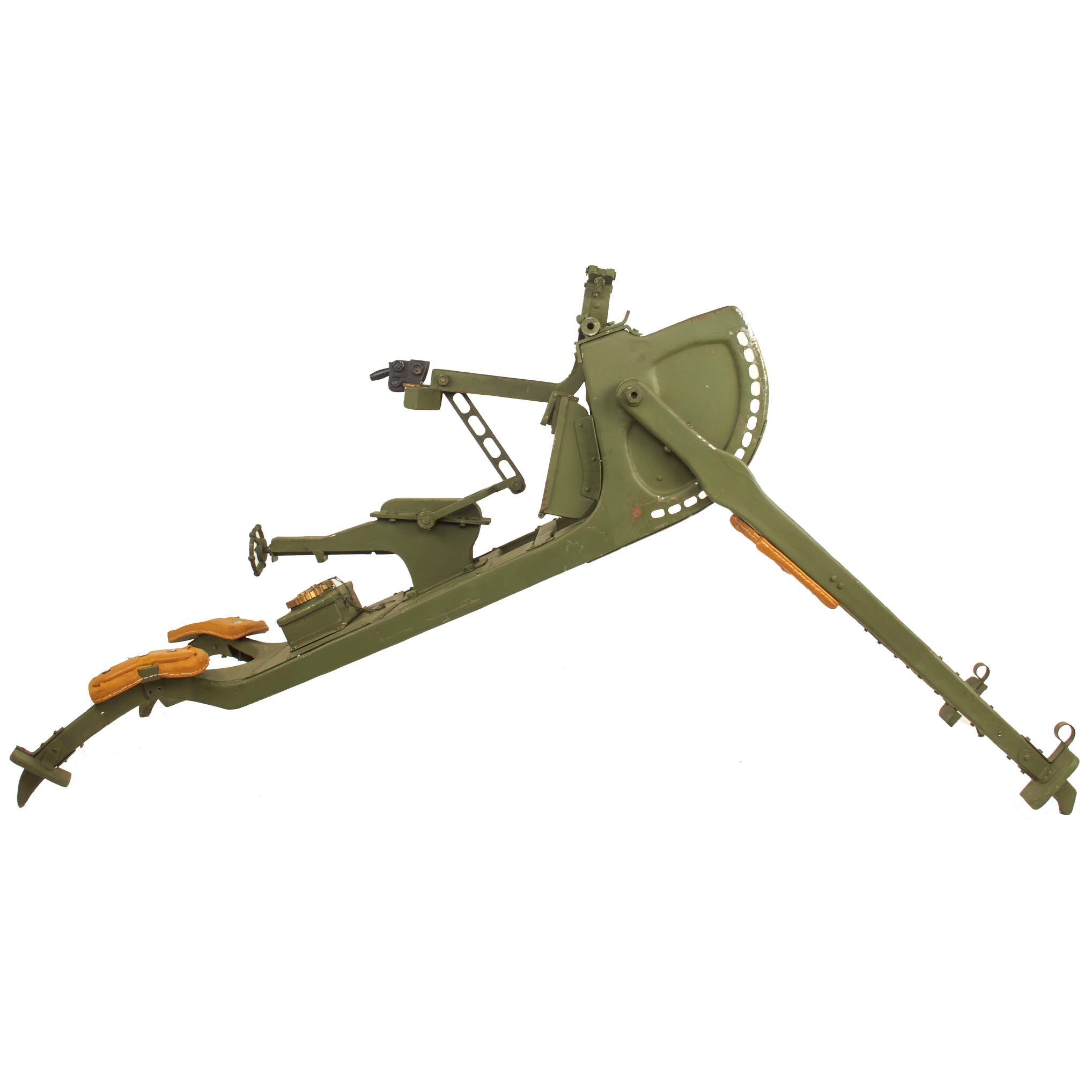 This is a very nice recently restored example of a high quality replica MG 08 Sled Mount, made in Eastern Europe probably about 25-30 years ago. The large demand for the iconic looking mount resulted in these reproductions being made, which are perfect for display or re-enactment. With the exceedingly high cost of an original example, as well as the rarity, these were a much better option for anyone looking for a way to display their MG.08 machine gun.