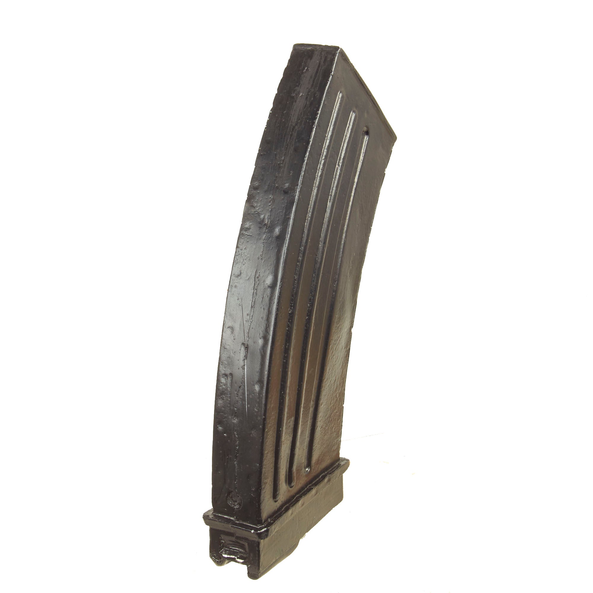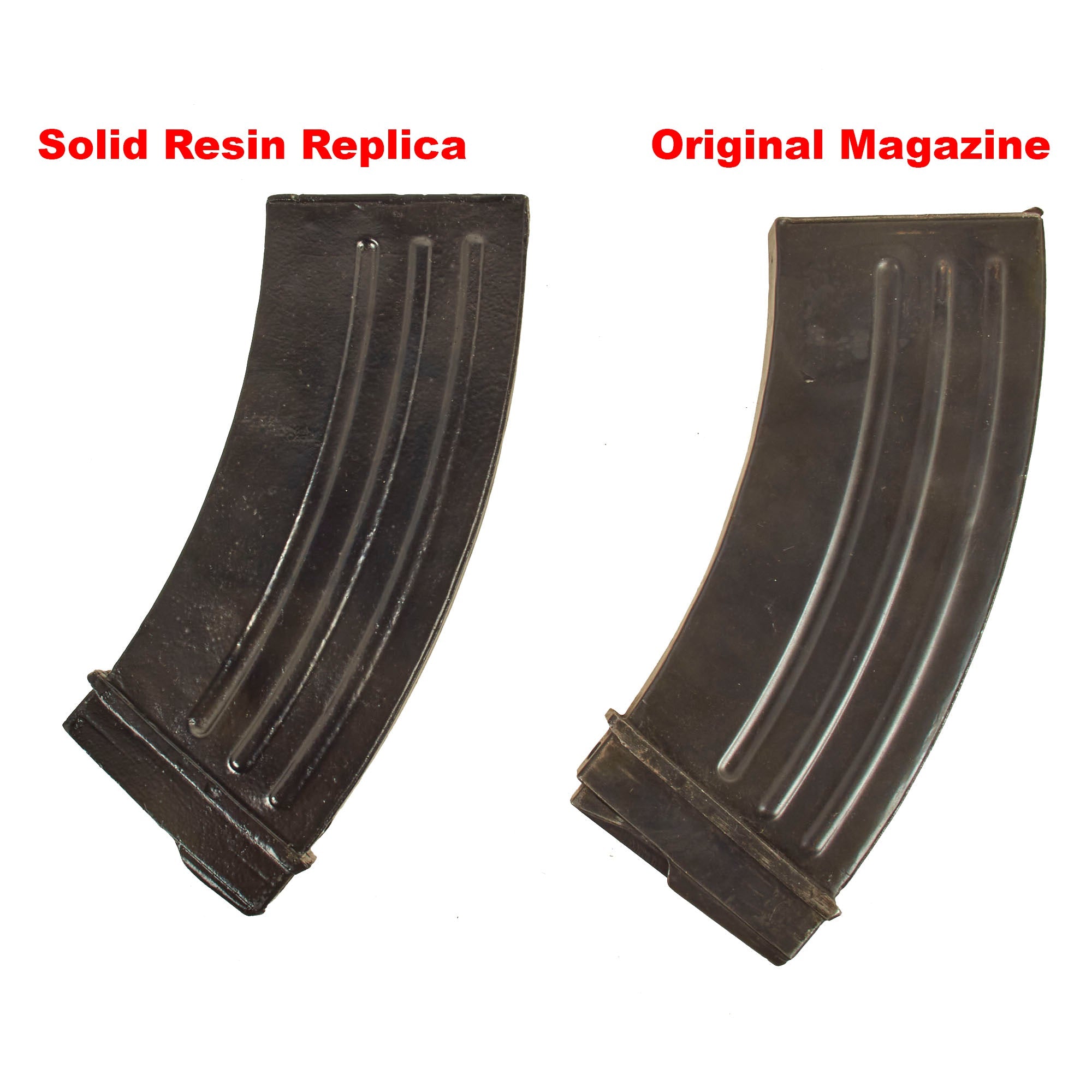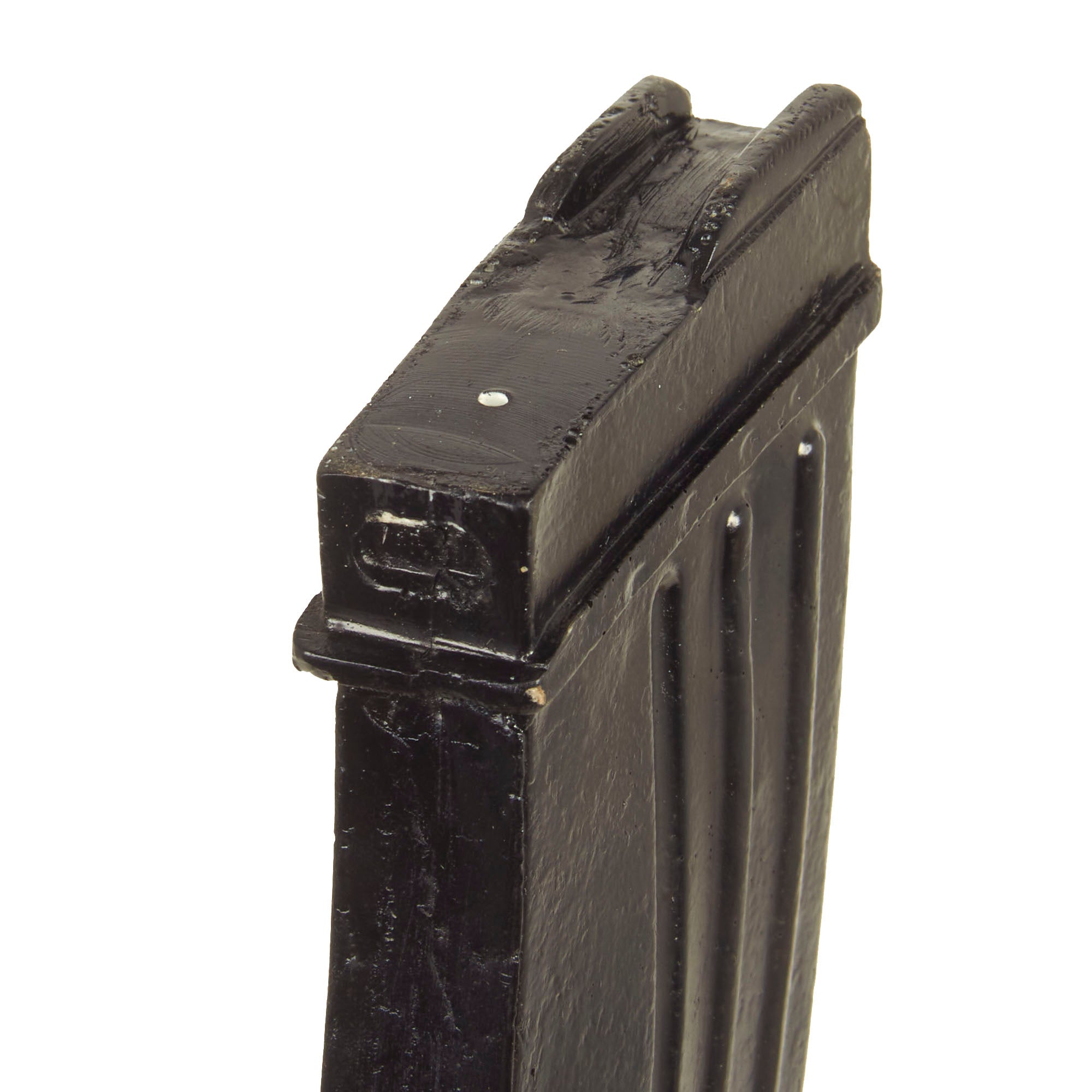 We had these magazines specially manufactured with a mold taken from an original WWII magazine in our collection. The magazines do not click into place but still properly stand upright while resting in the magazine well.