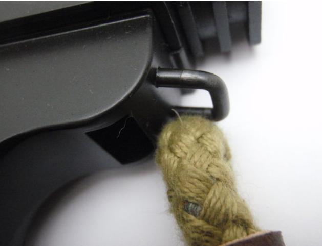 A Japanese Nambu pistol lanyard can be used with the T-14, 94, Papa and T26 Revolvers. This is excellent overall quality cotton cord with genuine leather keepers but was made too thick when compared to an original.