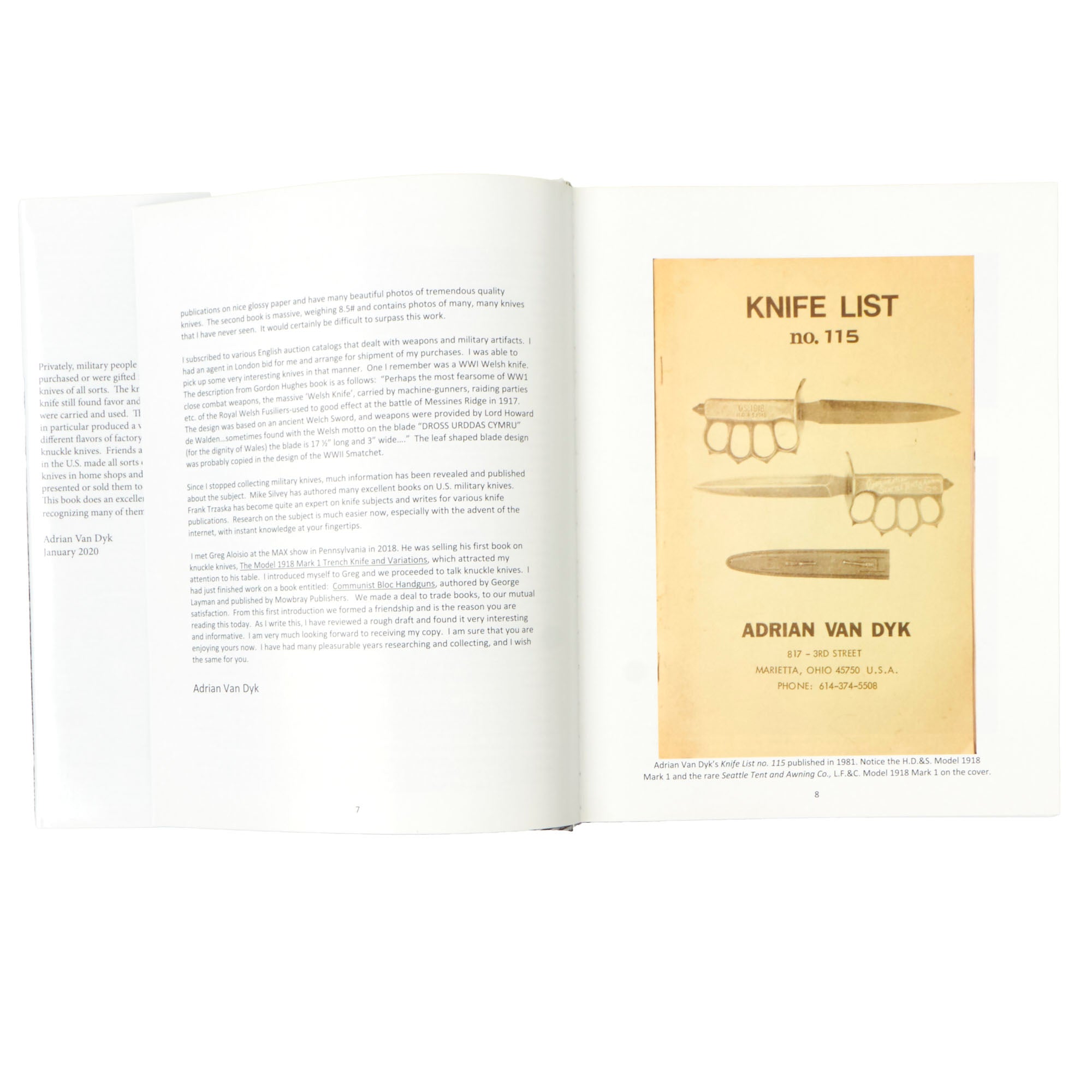 Very Few New Old stock Available. We had two cases of these sitting in our warehouse since 2022! Now Out of Print, prices on the secondary market are over $500 for this book! "Knuckle Knives of Second World War" By Greg Aloisio. All copies are signed by the author and dated 2022.