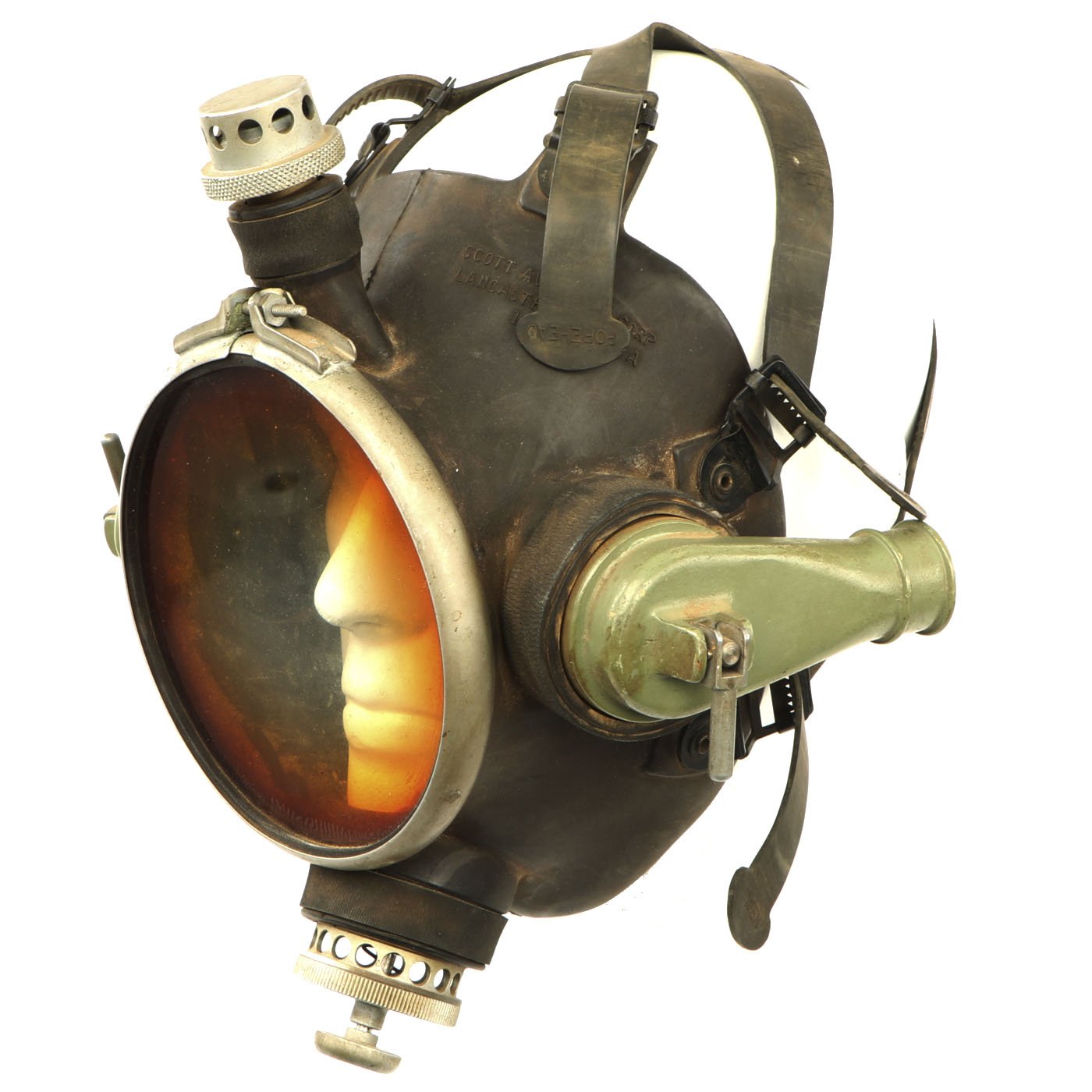 - Original Item: Only One Available. This is a rare mode Scott Aviation Corporation non-magnetic SCUBA diving mask dated January 1956. The full face mask allowed the use of communications and kept face warm in cold conditions. This is a rare non-magnetic model made for the military. Offered in very good condition.