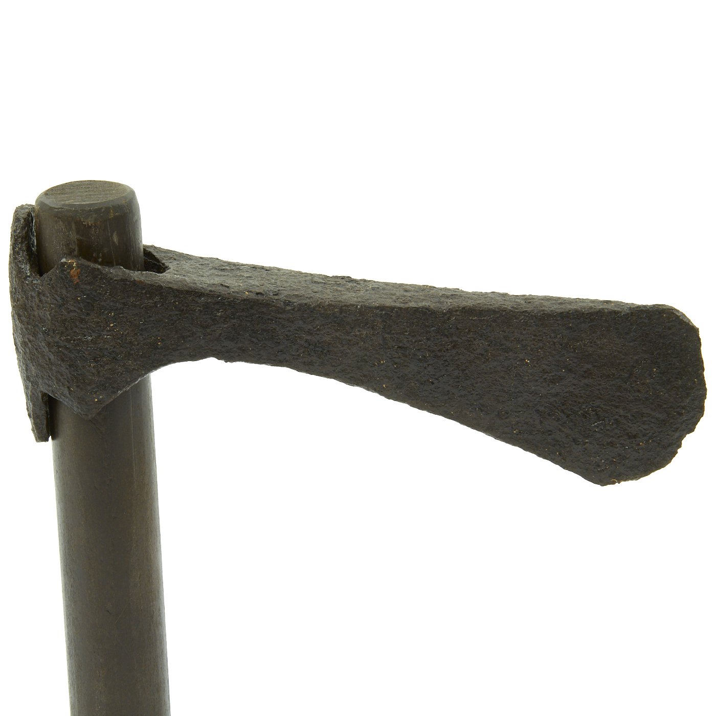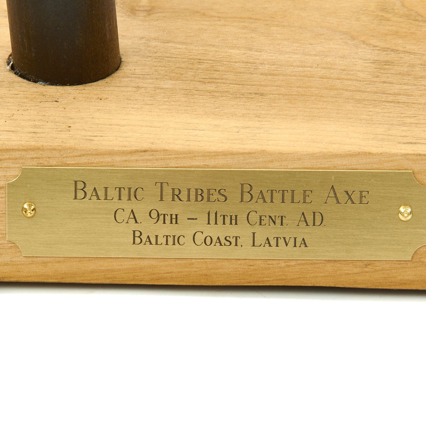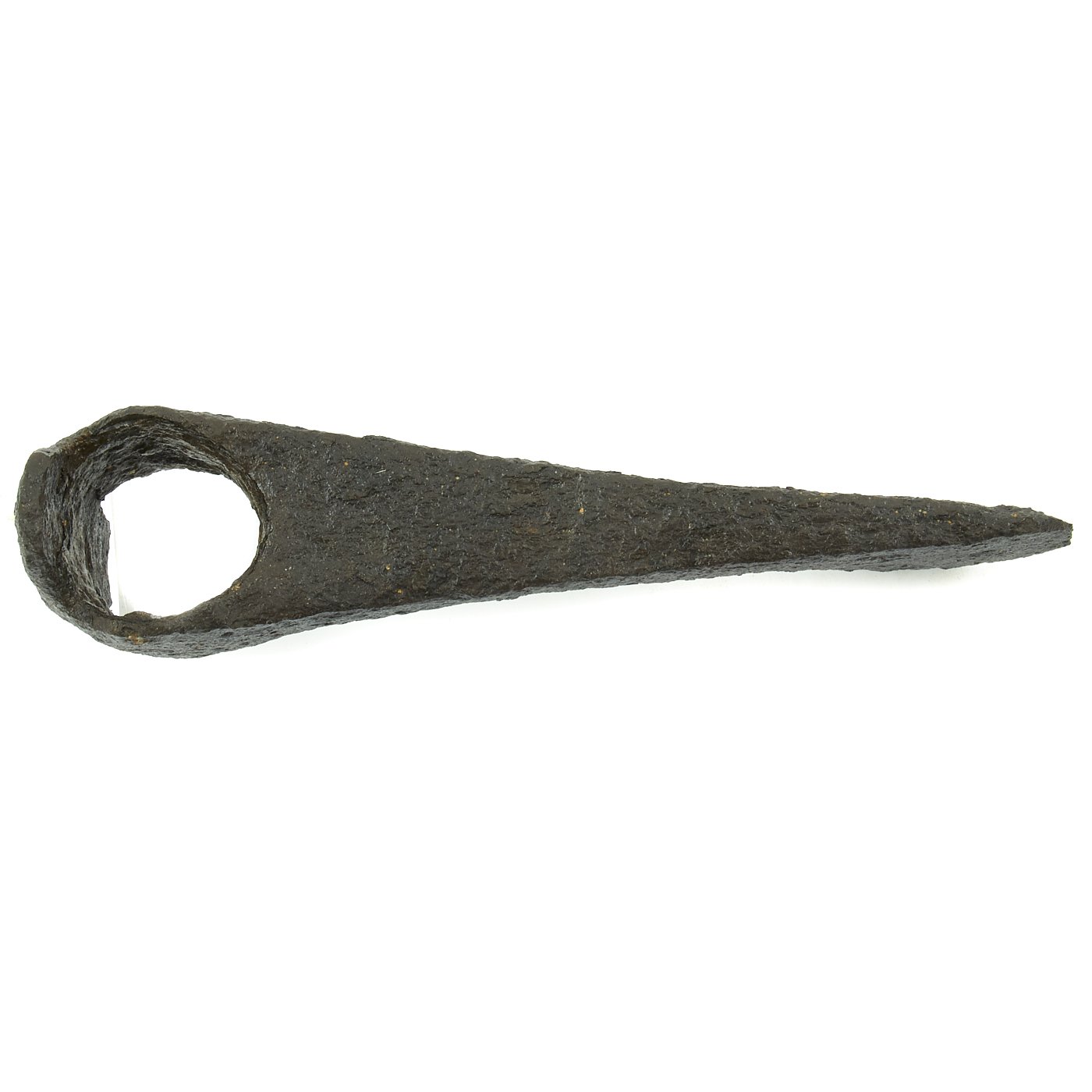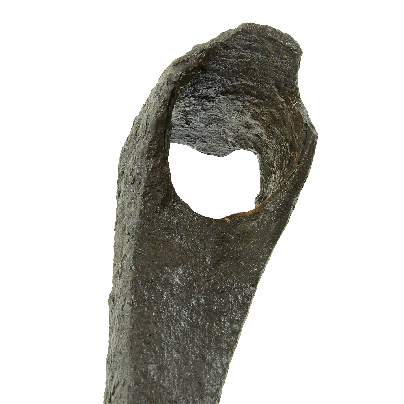 Original Item: Only One Available. This is a very nice smooth Viking axe head with graceful lines and traces of the original edge. A professional archaeologist cleaned this axe and treated the iron against further corrosion. The shape of this axe is similar to the third one in the accompanying archaeological sketch. Some of the drawings show what the axe would have looked like with its handle. Like many Viking artifacts, this axe was found by a farmer while cultivating crops. Dug up with bronze bracelets and other personal metal items.