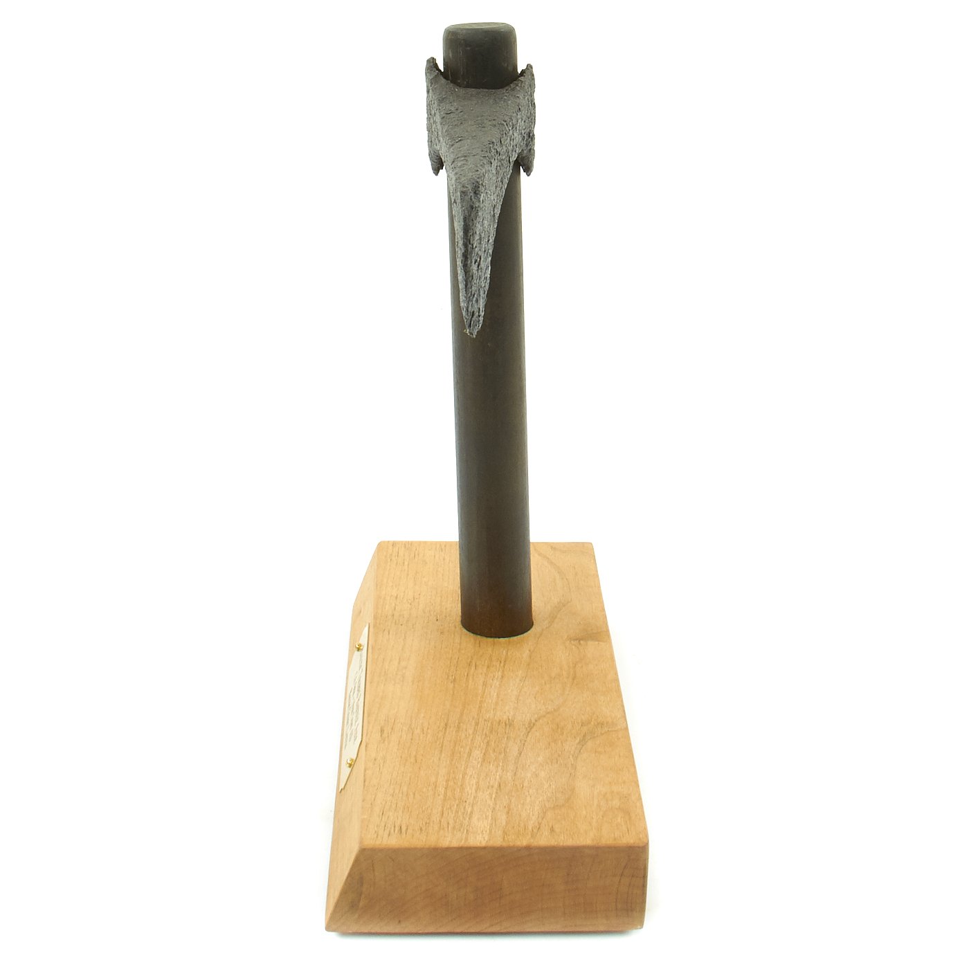 This fine example is mounted on a wood display stand with an engraved brass plaque that reads: