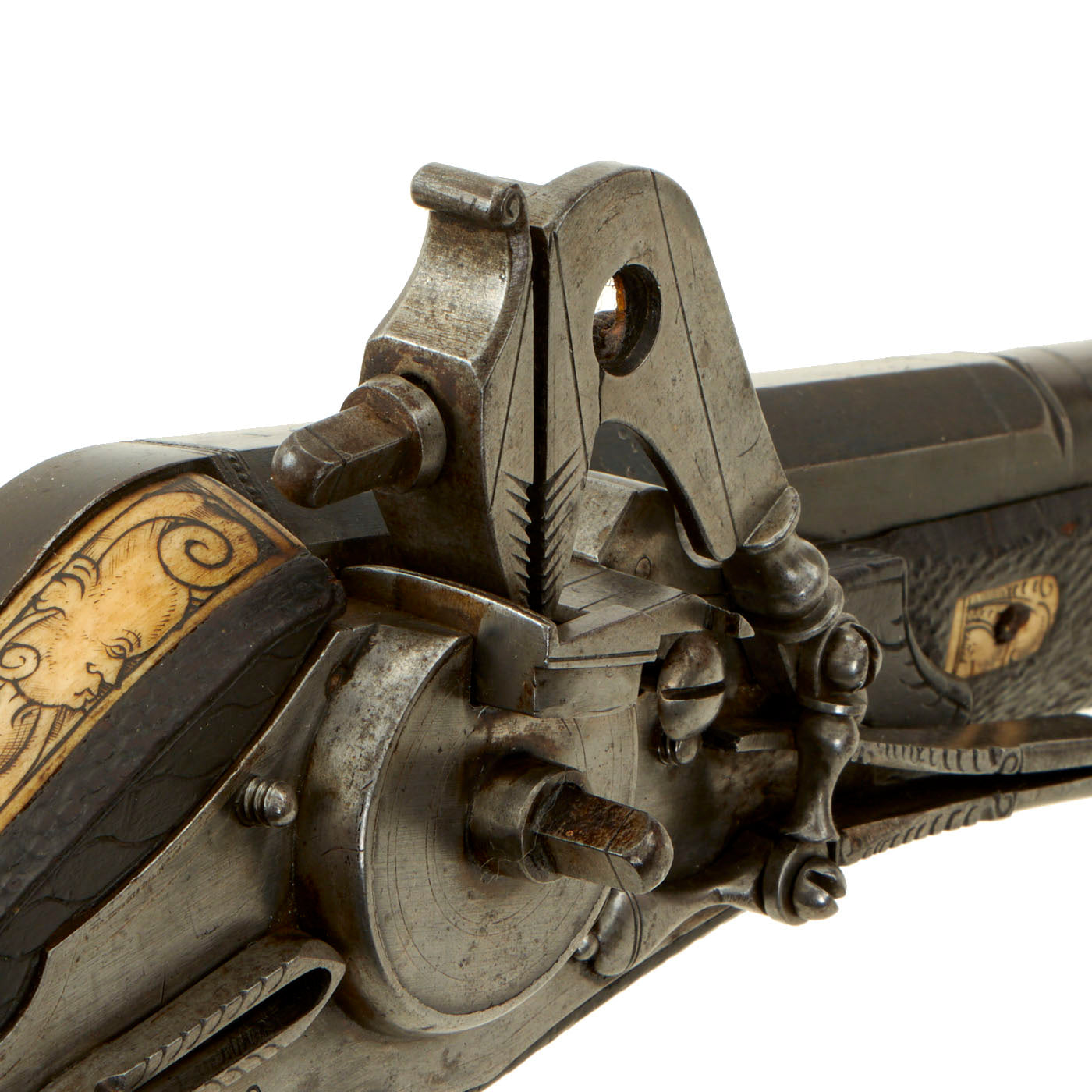 This is a magnificent example of a late 16th century German wheellock pistol, which at the time was cutting edge technology. The complexity of the action in these pistols is truly astounding. They were definitely high end items, and usually bear high levels of decoration fitting of an item that only the wealthy could afford.