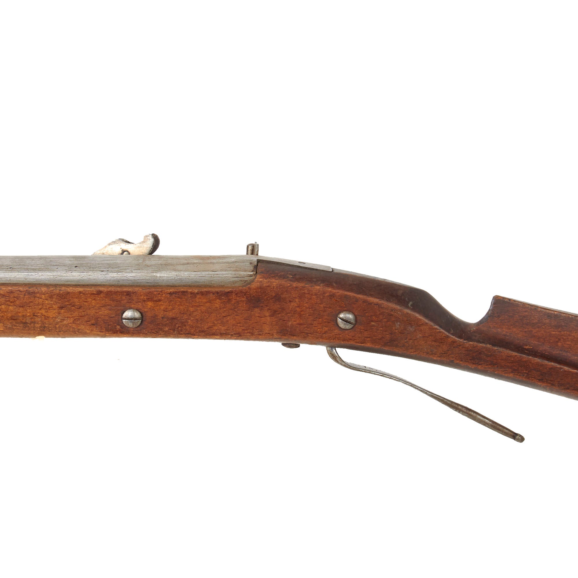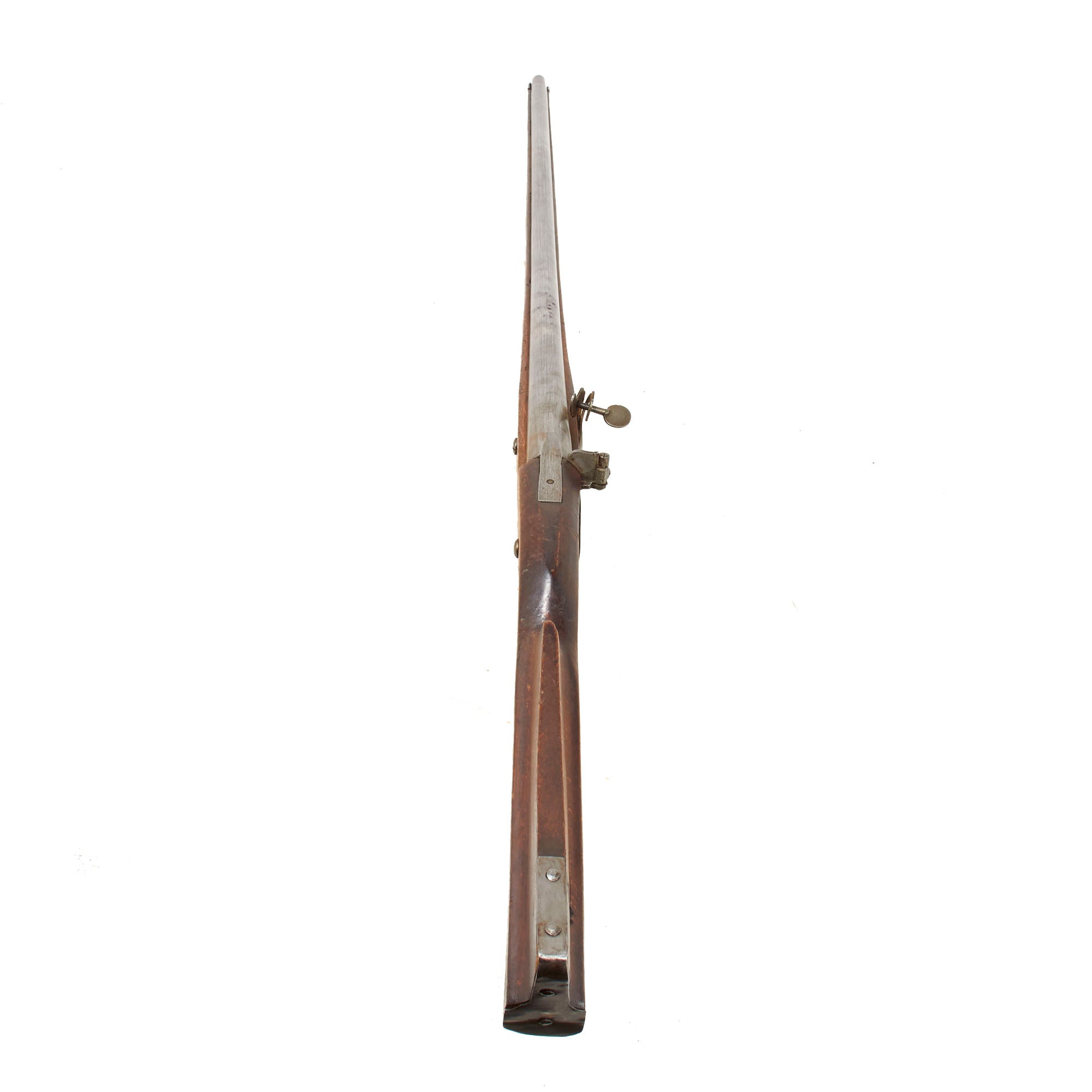 Original Item: One-of-a-kind. Here we have a fantastic example of the direct ancestor of flintlock muskets, an arquebus matchlock musket purchased out of an old collection where it has been since 1965. These utilized a burning wick held in the arm of the lock, called the cock, which would then touch the flash pan when the large lever on the bottom of the weapon was pulled. This would then ignite the charge in the barrel and send whatever it was loaded with on its way. Matchlocks first appeared during the 15th century, evolving from primitive "hand cannons" that simply had a touch hole that one would put a lit wick into. This would still work great for heavy brass cannons for a few more centuries, but having to aim while holding onto a wick and not being able to sight it at all was hardly ideal.