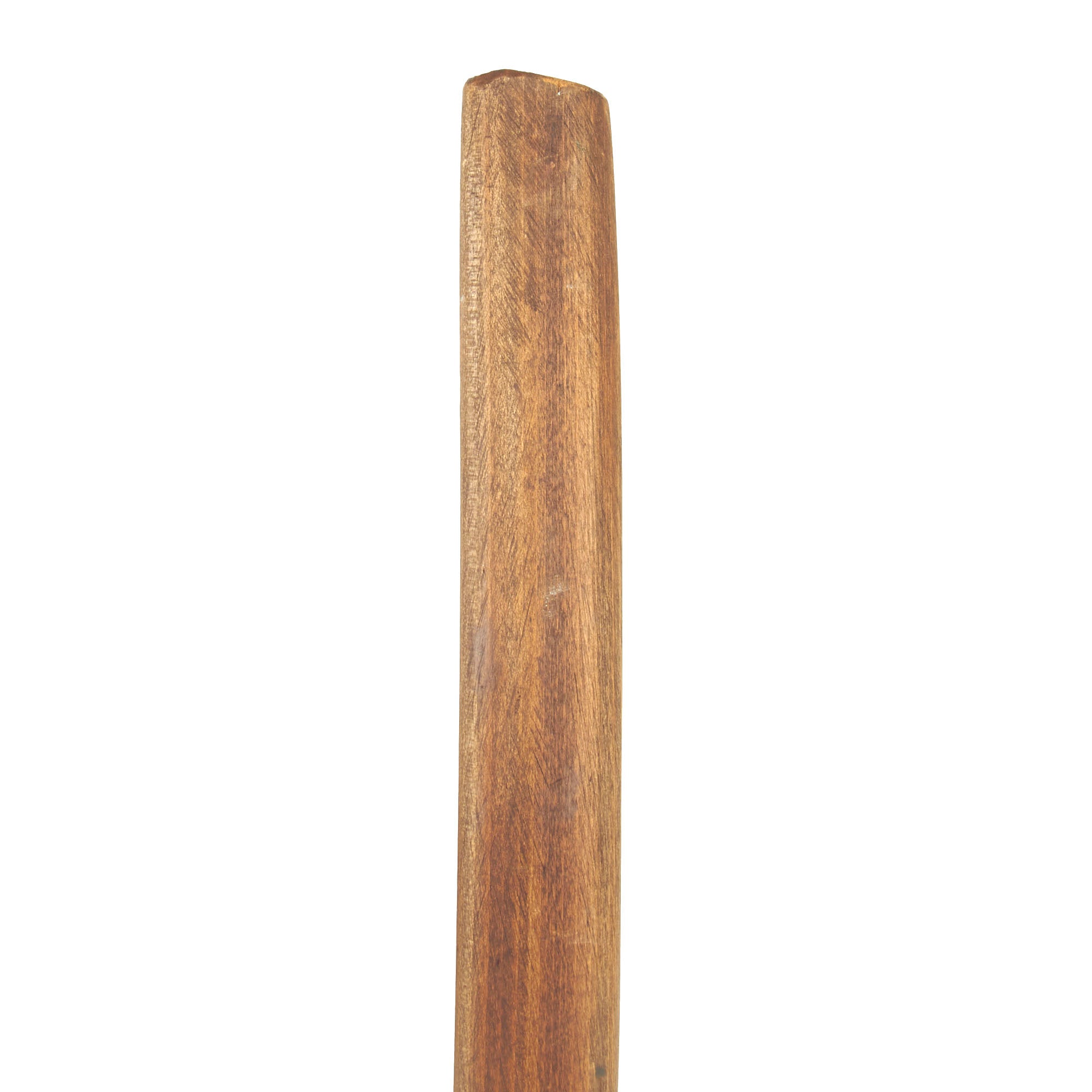 The Blade of this example is 15" long, from the tip (kissaki) to the back notch (mune-machi), and the overall length including the tang is 30“. The blade is still in very good condition, showing no real wear or damage to the edge except at the very tip, and is still VERY sharp, so it should be handled with care. It has the typical Unokubi-Zukuri (Cormorant's Neck) shape, standard for a Naginata. It looks like there was some oxidation and scuffing at some point, which was cleaned away using uchiko powder, though this also has made some aspects of the blade faint. Both the large and narrow BO'HI (棒樋 - large or wide groove) fullers were originally filled with red URUSHI lacquer, a very common embellishment on polearm blades such as this, however now only traces remain.