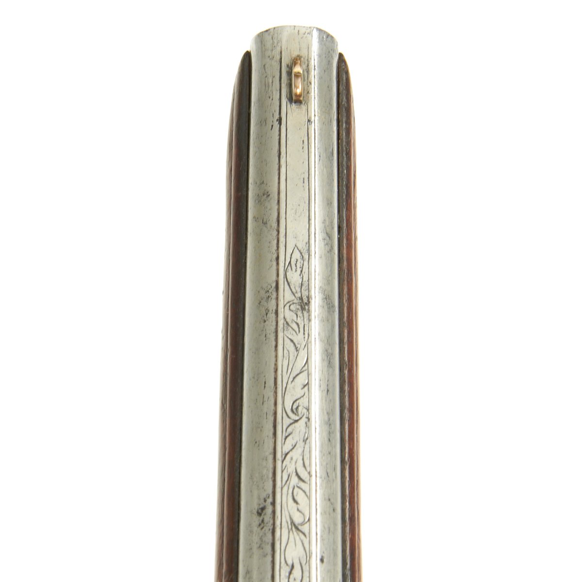 This matched set is in excellent condition, with the beautiful look of well cared for antique firearms. The stocks are made of lovely brown hardwood, with a good amount of figuring, and clear grain.