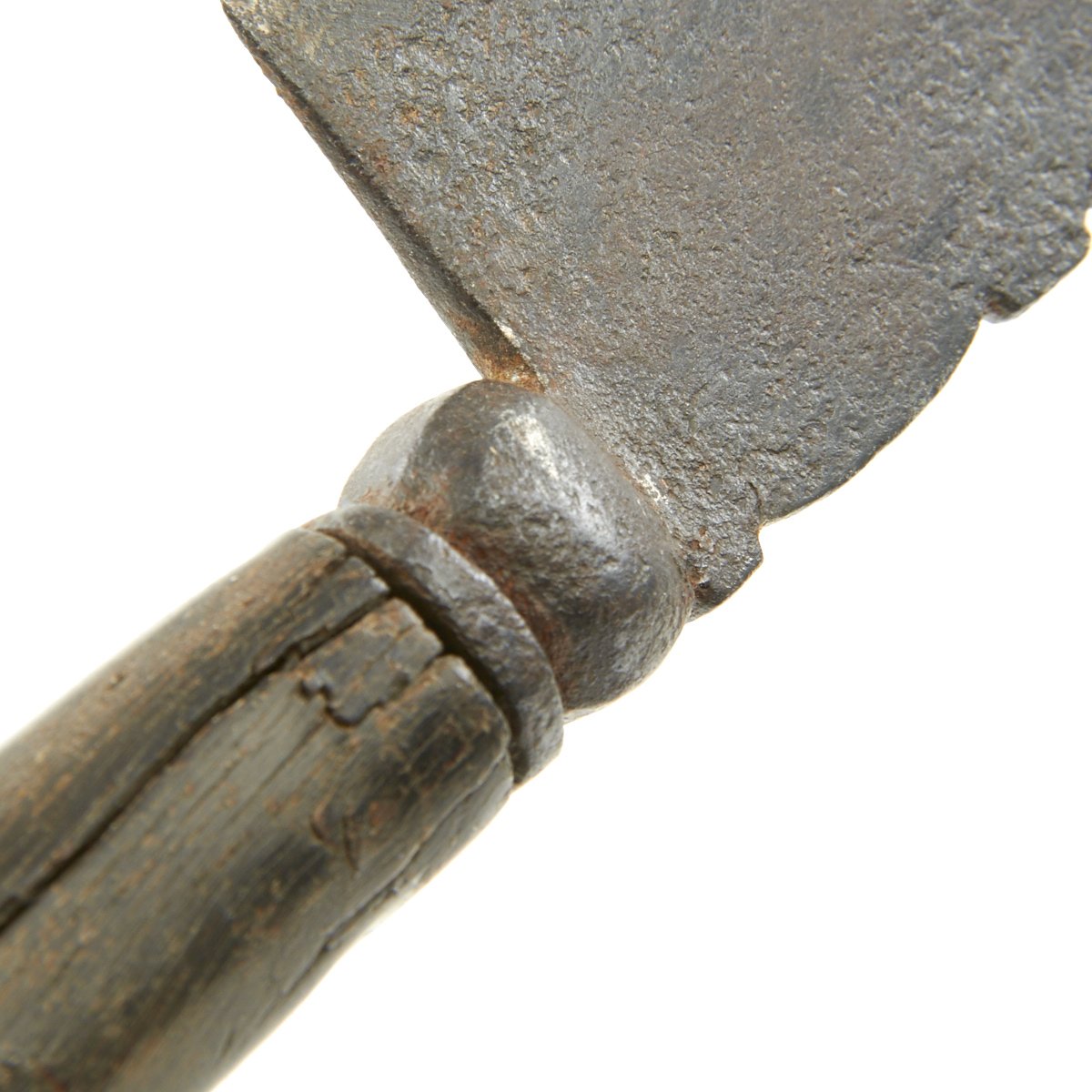 The iron blade is very dark with patina and old rust pits and the very mature wood grip does show a couple of age cracks however the dagger shows a lot of romance and perhaps took part in England's last land battle, which cemented the the House of Hanover and the Royal family England enjoys today.