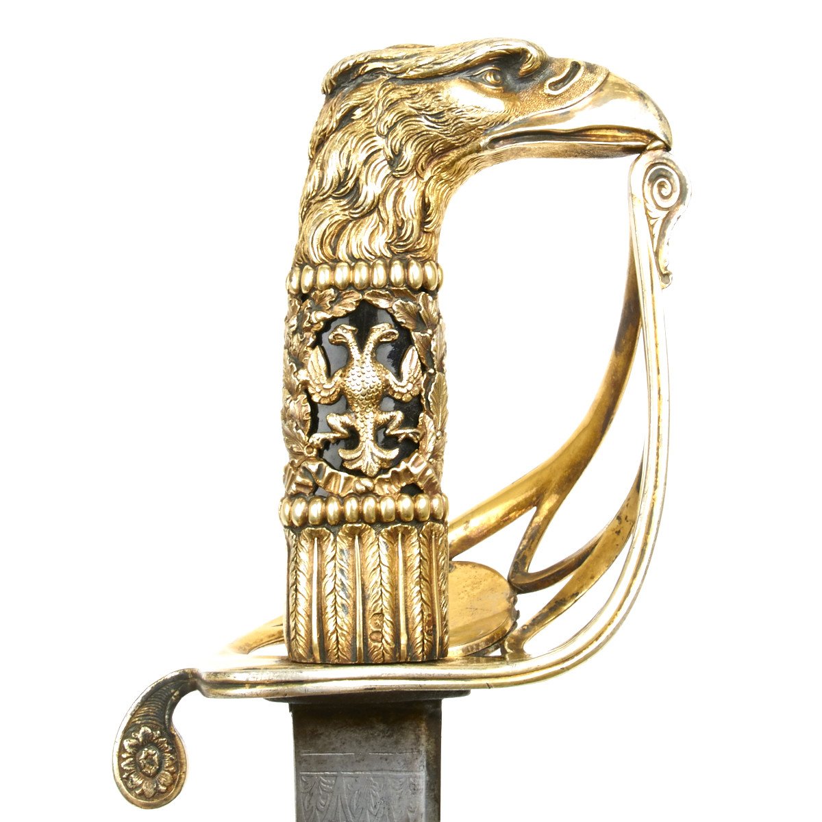 Prosser was one of the foremost and important sword smiths in England. His business patent declared he was 'Prosser maker to the King and the Royal Family, London'. According to May & Annis, Prosser kept this particular wording of Royal patent until 1827. Wm. Prosser (and John?) Sword Cutlers, were the King's sword makers and made for the Duke of Wellington. They also made swords for Count Platen, Aide de Camp to King of Hanover, who was ordering swords such as worn by Cold Stream Guards), in September 1818, and almost every great English family of the nobility used Prosser for their finest swords, from the 1790's till the 1830’s. Prosser's presentation swords are a central part of the Royal Collection.