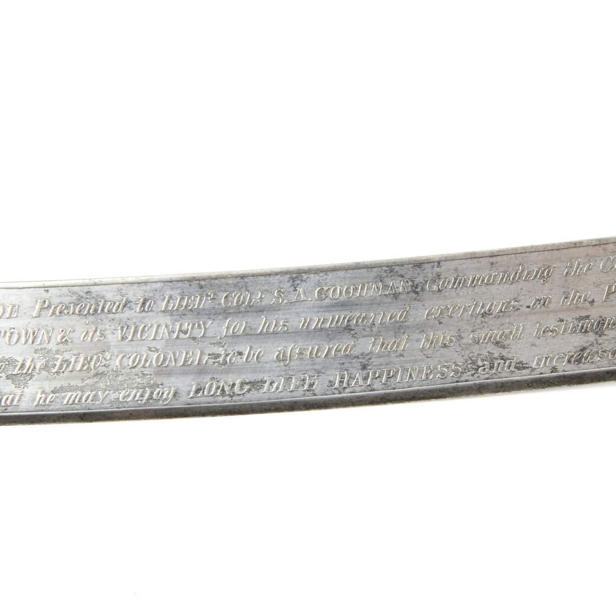 Original Item: Presented to Lt. Col. Stephen Arthur Goodman, the Duke of Wellington's Deputy Judge Advocate, who served at Waterloo in 1815 [he was formerly a Lt Col of the 48th Foot]. This sword was presented to the Colonel some 8 years after Waterloo, in 1823, in his capacity as Lt.Col of the George Town Brigade of Militia, in the United Colony of Demerara-Essequibo [latterly British Guyana] while still on half pay as Col. Of the 48th Foot.