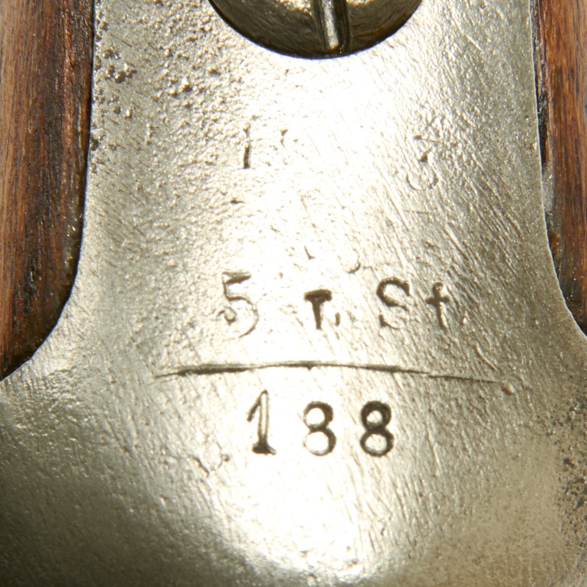Our example, from an old Florida collection stamped 856 on the lock plate indicating original manufacture in 1856. It is well marked including WERNDL who was the director of the STEYRWERKS at the time and whose name the new Werndl Rolling Block Rifle was named after.