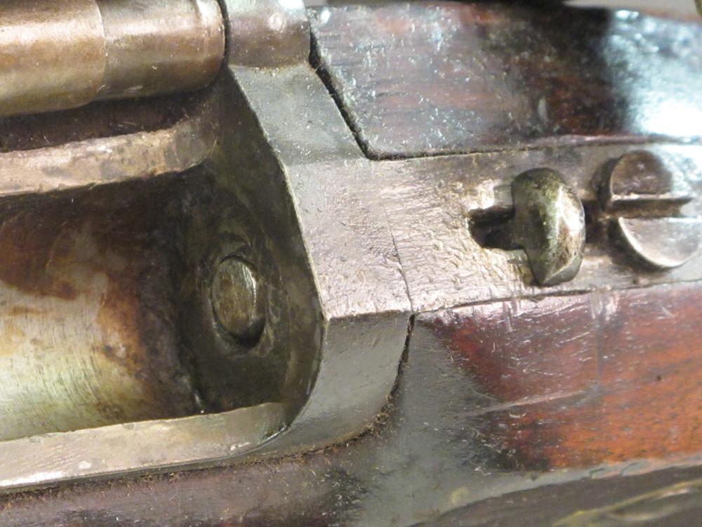 The rifle bears no markings other than Nepalese arsenal markings. The indicator when in the rear position indicates that there is a cartridge in the chamber, in the forward position the chamber is empty. The firing pin housing on the top of the breechblock has an oblong window cut in it so one can see the position of the firing pin spring.