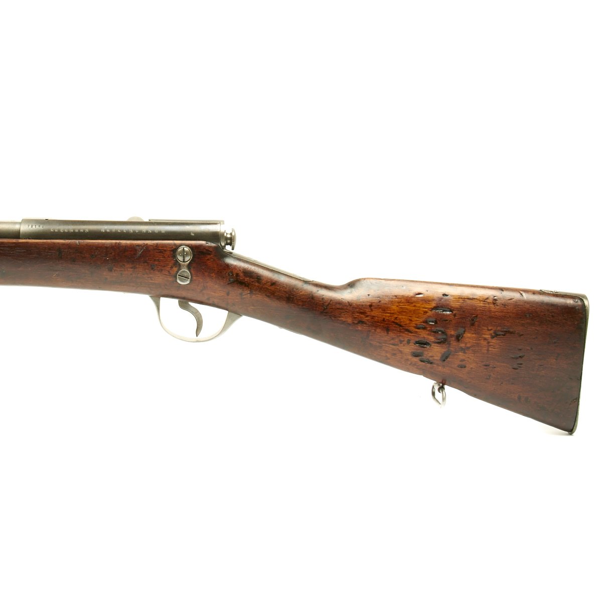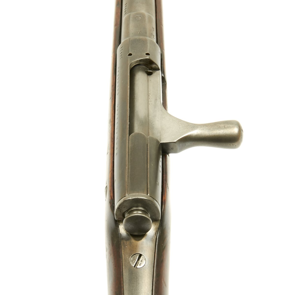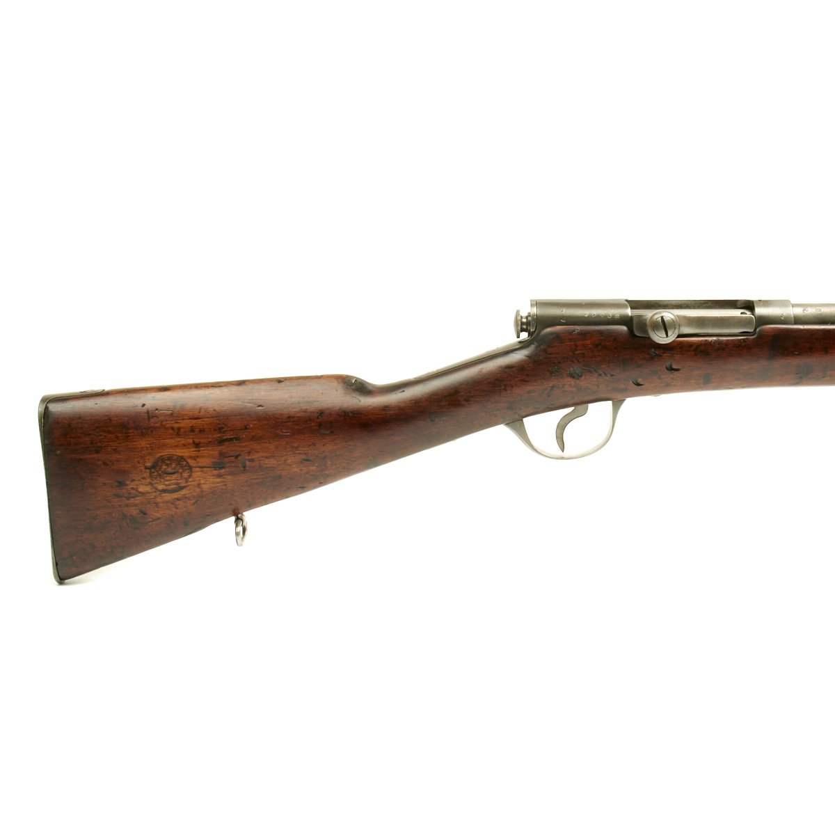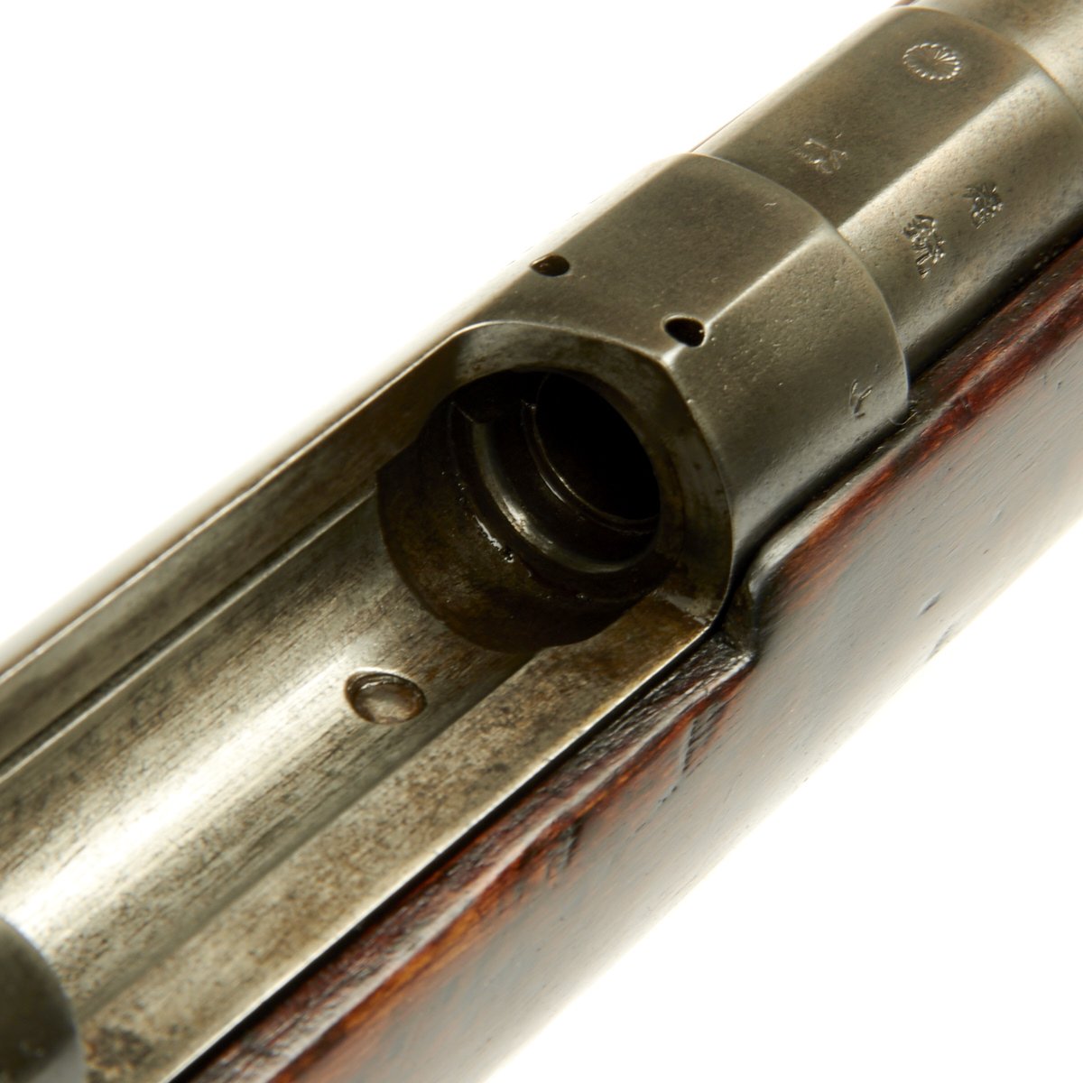 Condition of the rifle is very good, especially considering the age. The stock and metal components show wear, but the proof marks on the metal components are still clear. The markings on the stock unfortunately are quite worn, though there are traces of a cartouche on the left side of the butt stock.