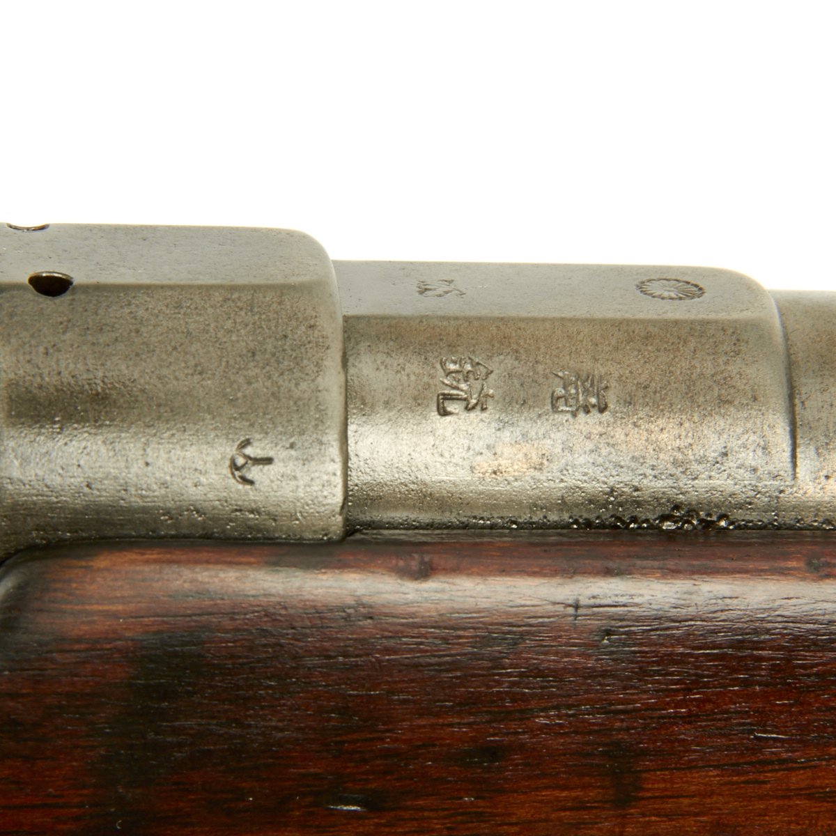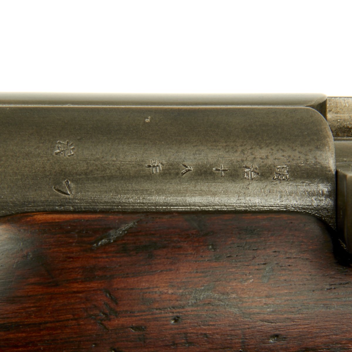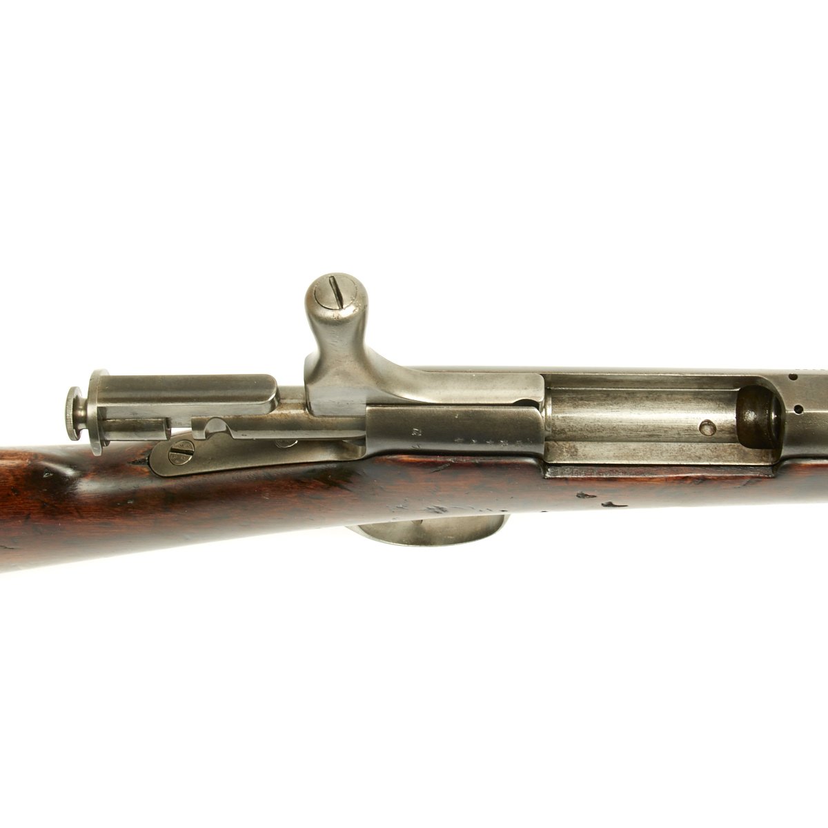 Condition of the rifle is very good, especially considering the age. The stock and metal components show wear, but the proof marks on the metal components are still clear. The markings on the stock unfortunately are quite worn, though there are traces of a cartouche on the left side of the butt stock.