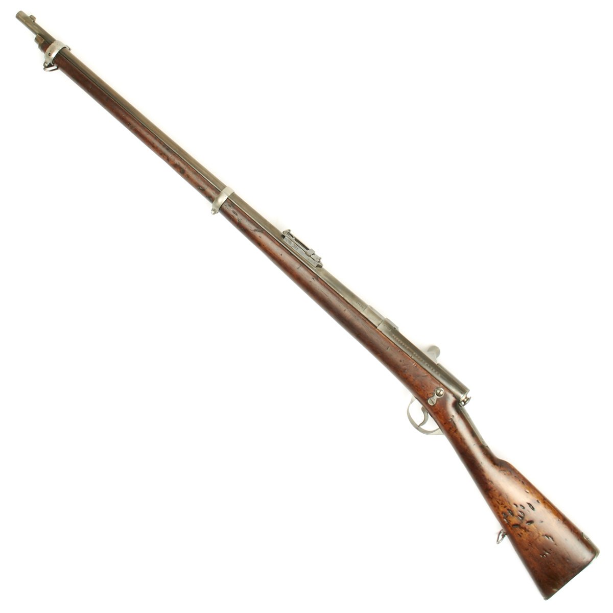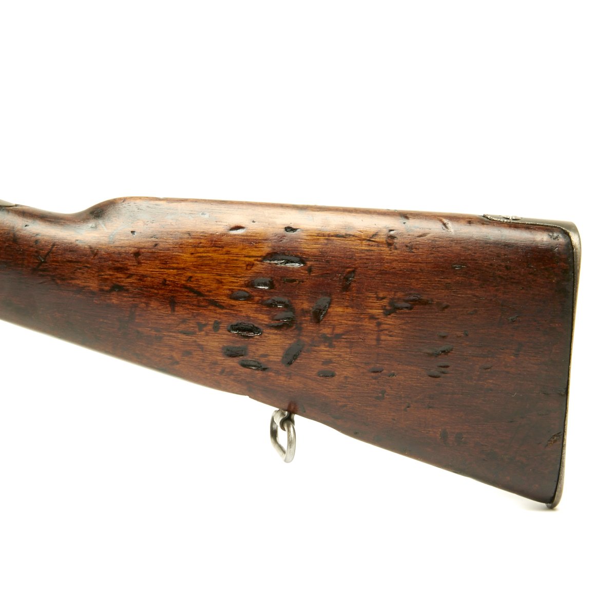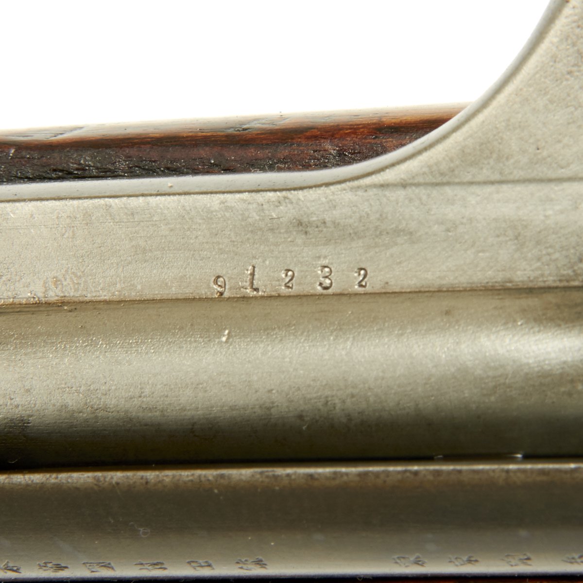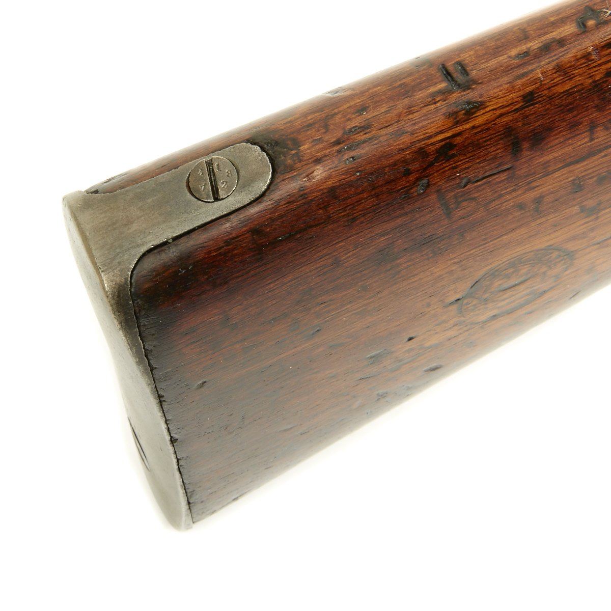 Condition of the rifle is very good, especially considering the age. The stock and metal components show wear, but the proof marks on the metal components are still clear. The markings on the stock unfortunately are quite worn, though there are traces of a cartouche on the left side of the butt stock.