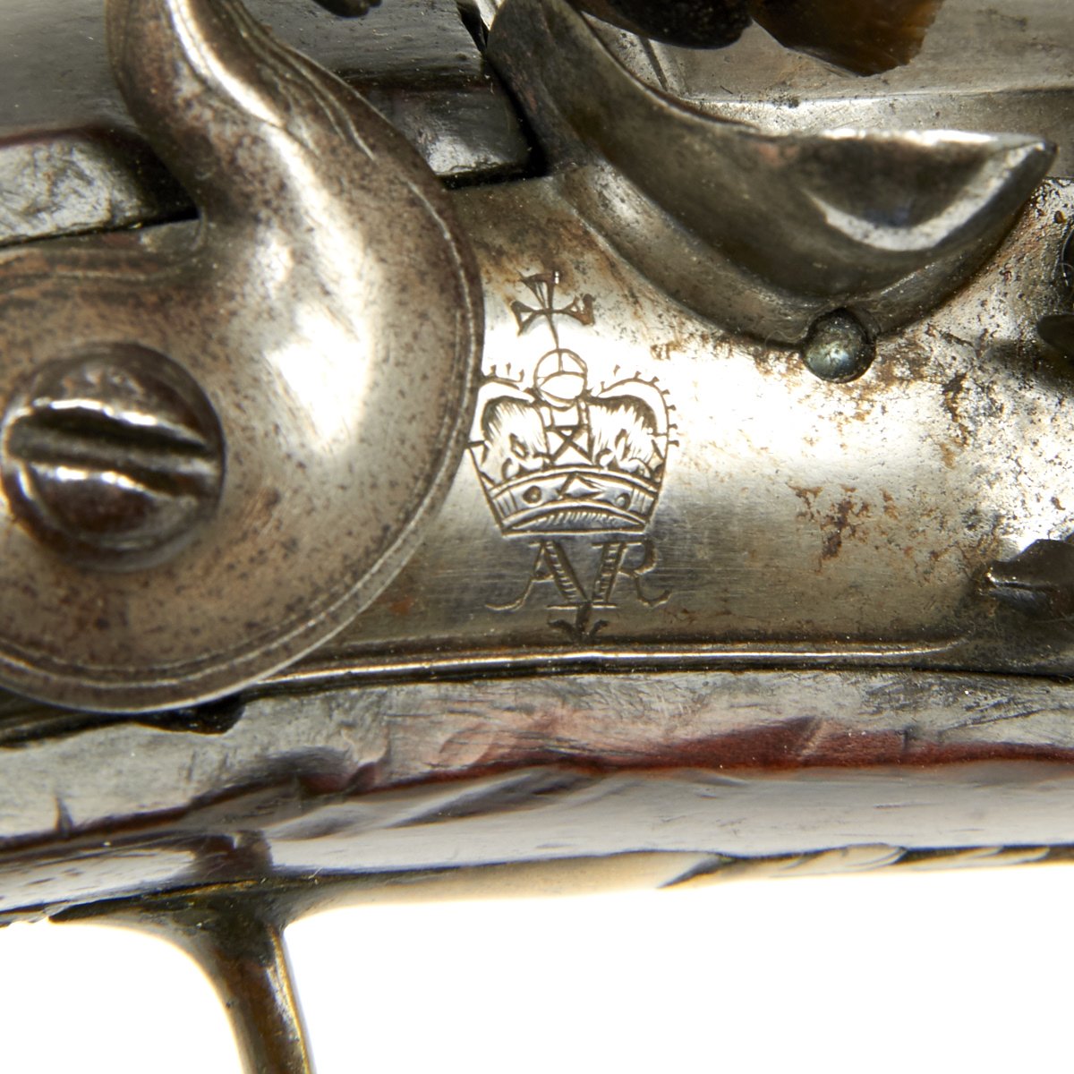 Original item: One of a Kind. These are exceedingly rare! This pistol was made by JOHN BROOKE, the nephew of RICHARD BROOKE, who had made long Flintlock Dragoon Pistols and Carbines bearing the King James II Cypher of 1685-1688. Richard Brooke died in 1700, and his nephew John took over until 1717 when in turn his son BENJAMIN BROOKE continued the business until 1720.