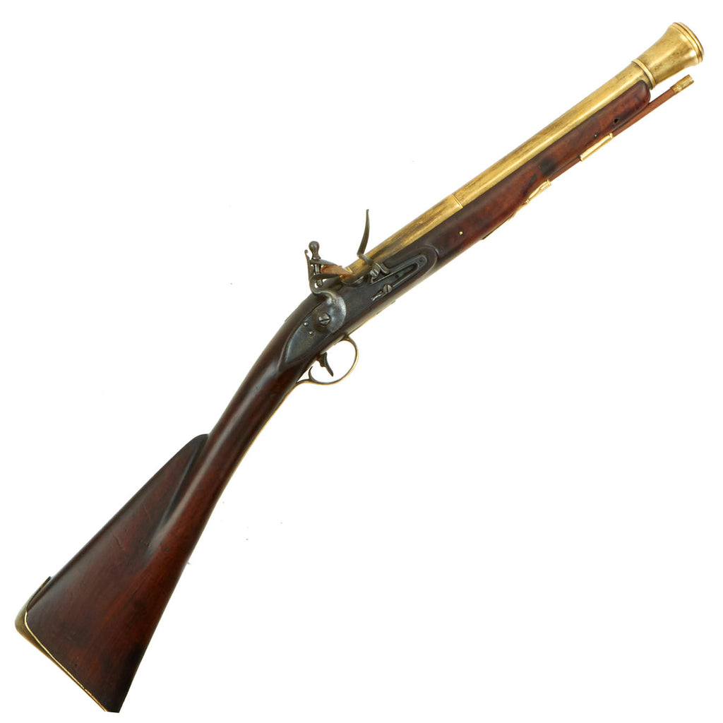 Original Item: One of a Kind. This lovely English Blunderbuss was made to order about 1770, marked on the lock by BATEMAN of London. Measuring 30" in overall length with a sturdy 14 1/2" Cannon style barrel originally intended for self defense but soon adopted by all the Coaching lines in England and the Continent as easy to handle and very effective to deter wrong doers.