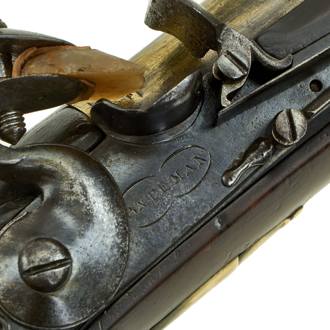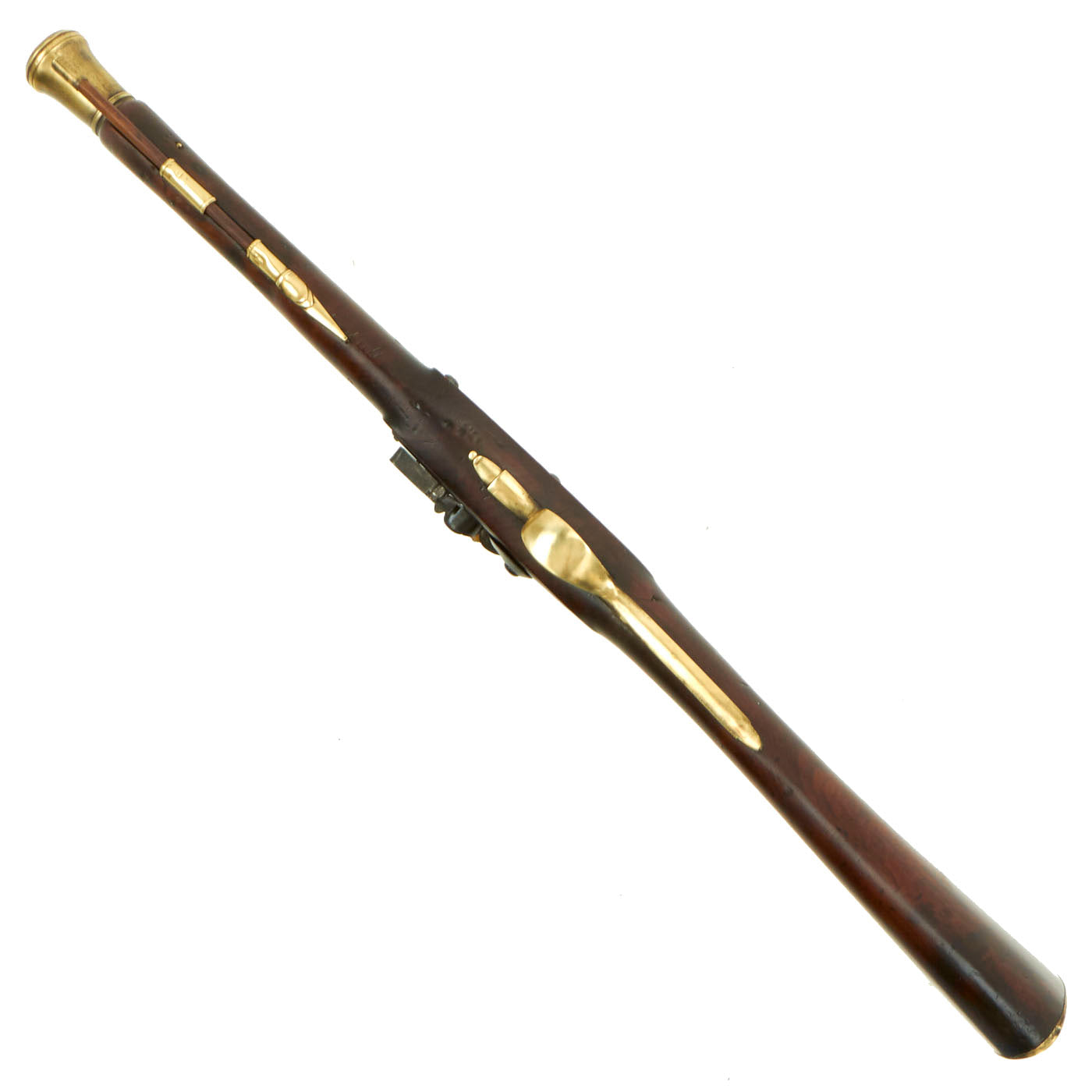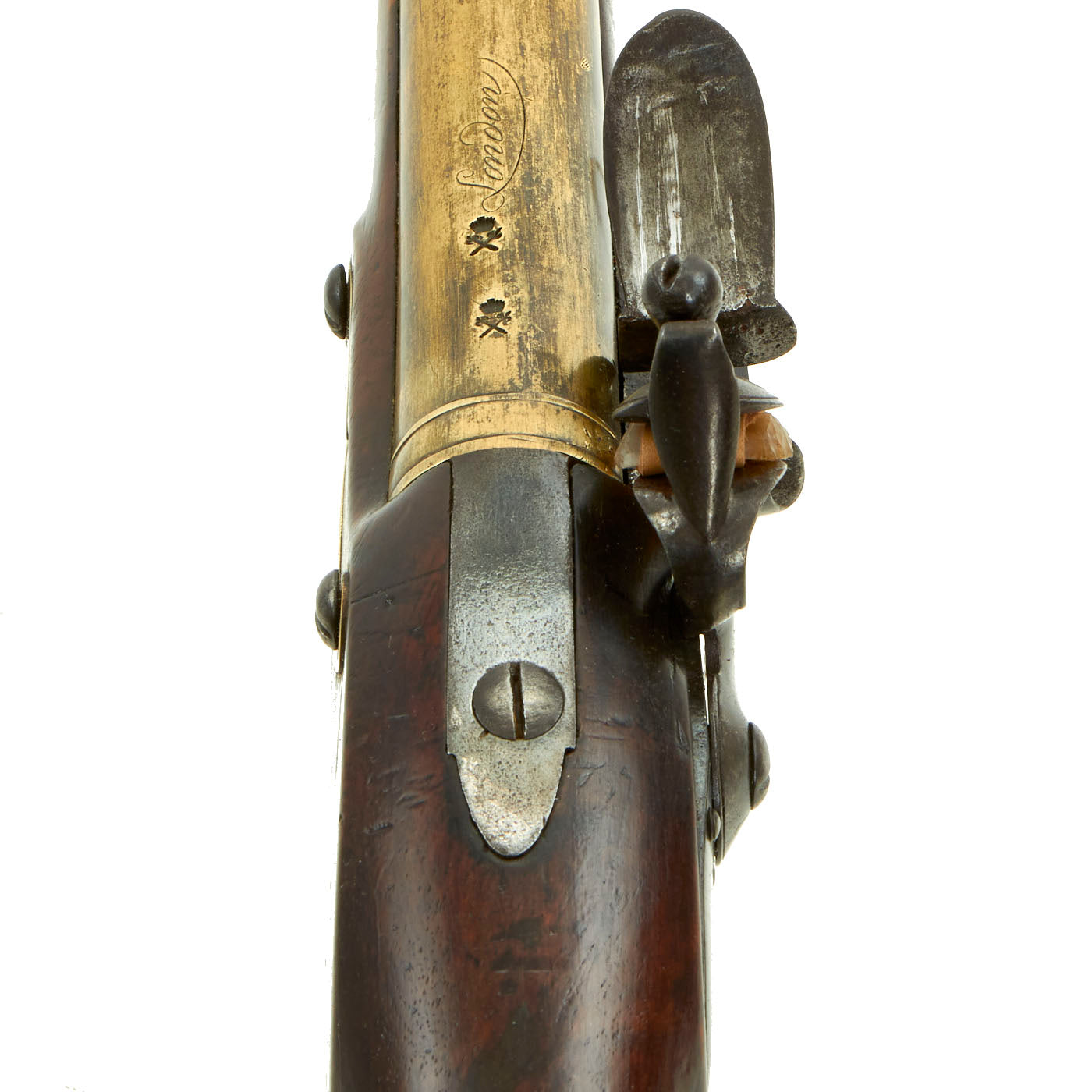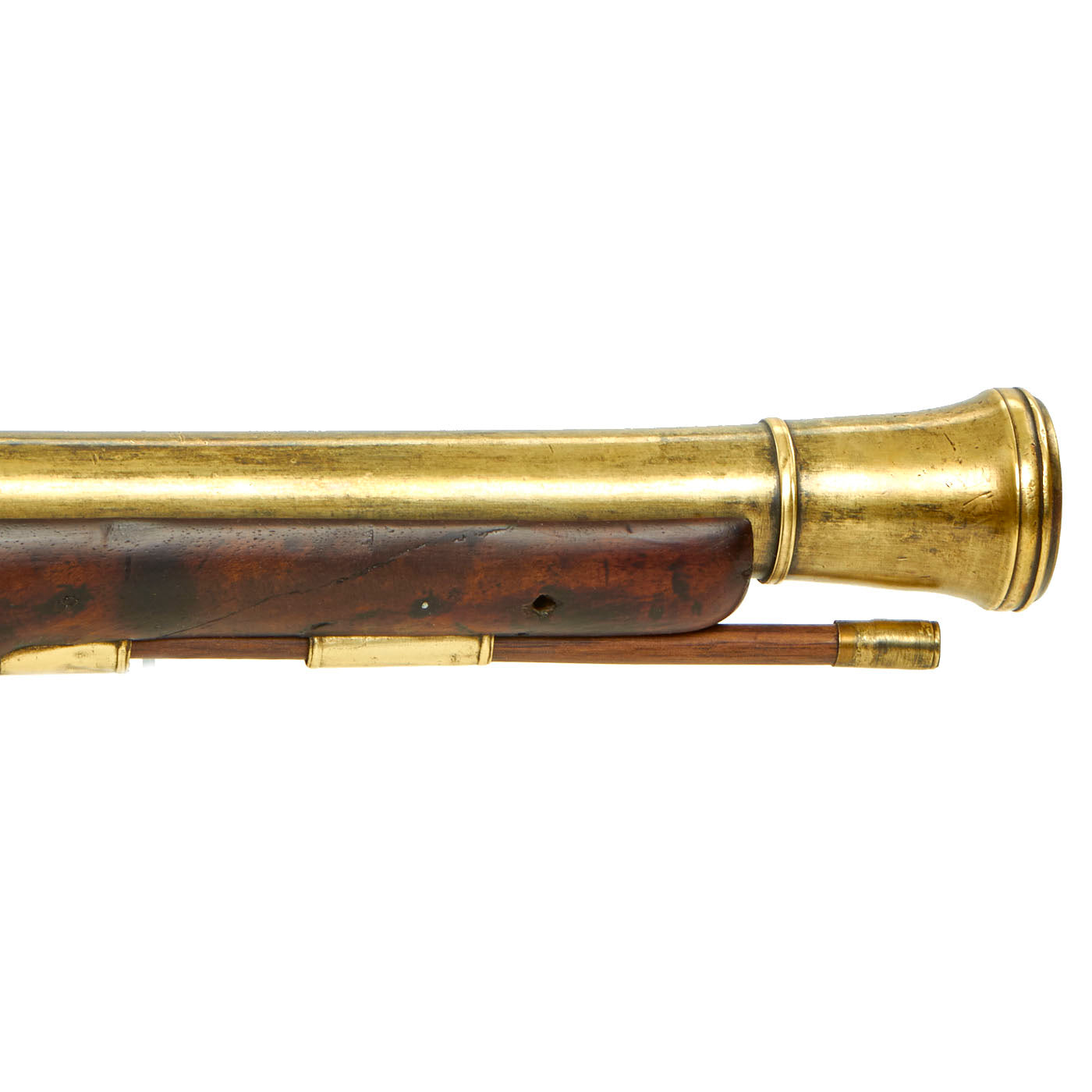 This fine flintlock is in just wonderful condition in all respects and comes complete with ram rod. The top of the brass barrels is marked London in cursive script just forward of the breech. The barrel also bears the CROWN / CROSSED SCEPTERS proof marks of William Ketland of Birmingham, England, who was so prolific that his marking later became the Birmingham City Proof mark.