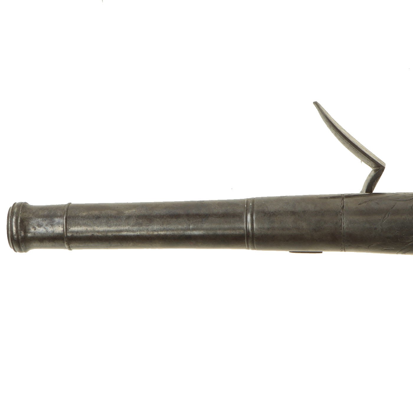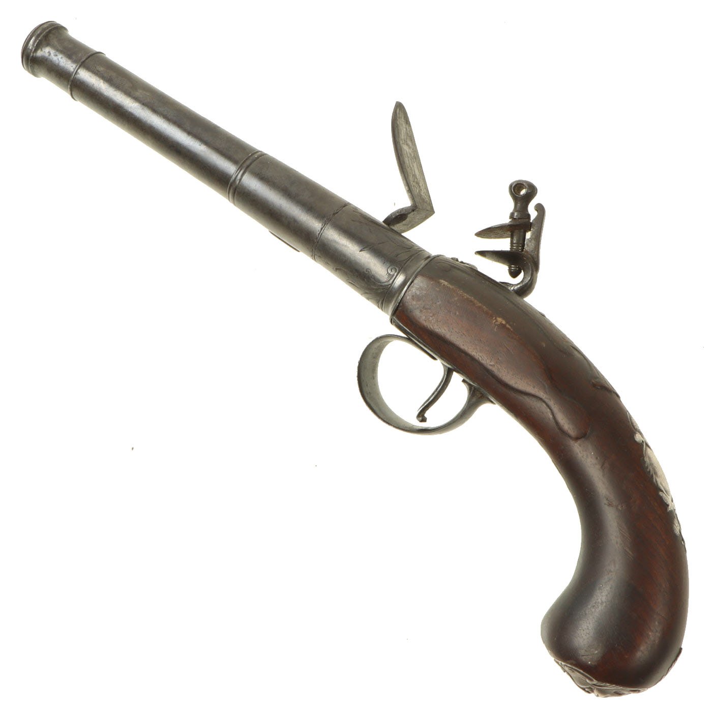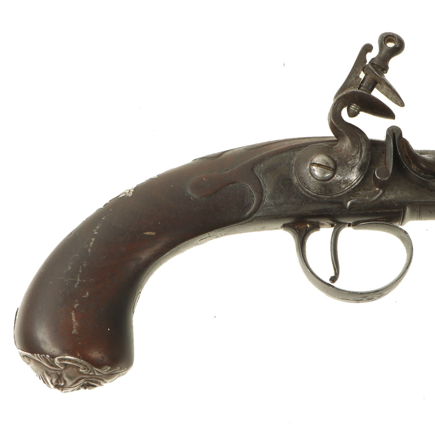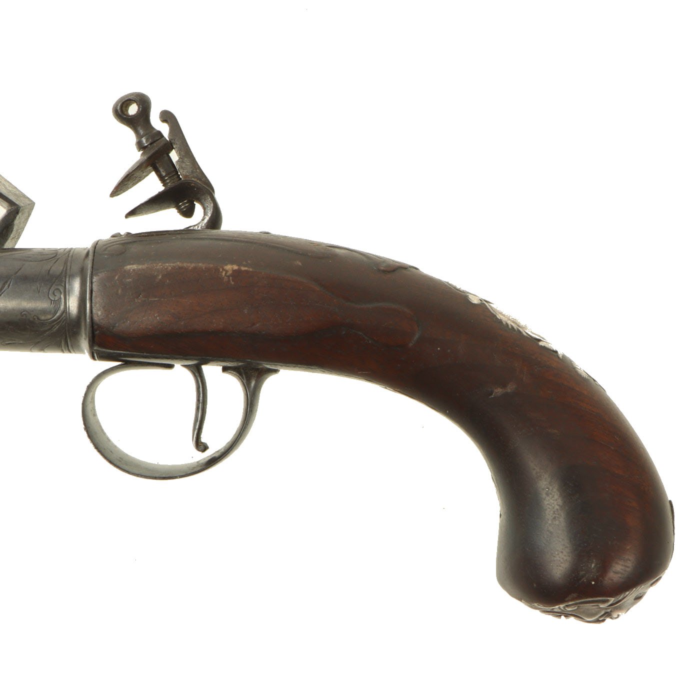 Original Item: Only one available. This is very rare "Queen Anne" style flintlock pistol, made by Jon Willets in the mid-late 18th century. Originally from Wednesbury, Willets operated shops in London and Birmingham between 1744-1789. He is listed as a maker of Flintlock Holster Pistols and Sporting Guns.