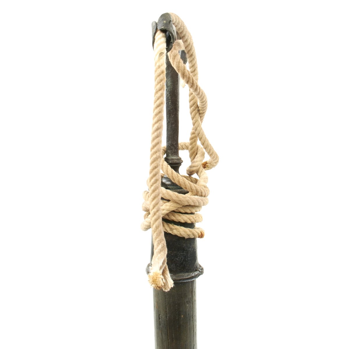 Original Item: Only One Available. A linstock (also called a lintstock), is a staff with a fork at one end to hold a lighted slow match. The name was adapted from the Dutch lontstok, "match stick". Linstocks were used for discharging cannons in the early days of artillery; the linstock allowed the Cannonier to ignite the fuse on a loaded Cannon from a small distance. It was introduced in the 16th Century when the quality of both Cannons and Powder were very much a hit or miss proposition. Not only could the charge flash back, but the recoil of the cannon might send the carriage toward the gunner.
