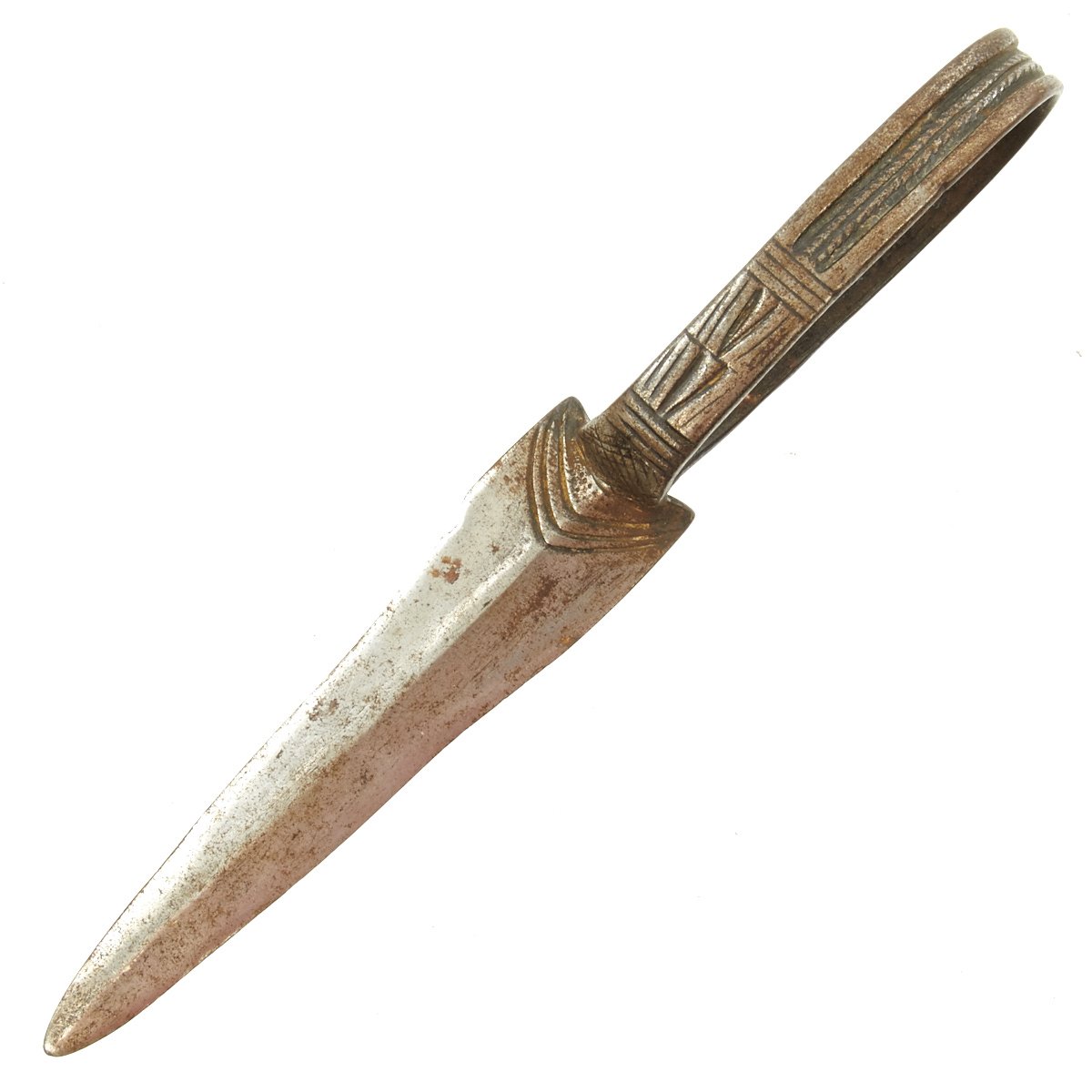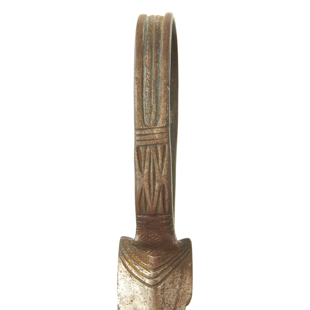 Here we have a unique weapon that was worn on the foot with a double edged blade jutting out to the side towards your other foot. When attacking the native would leap upon the back of his enemy and rode him like a horse digging in his "spurs", which were in fact blades, resulting in the killing of his victim.
