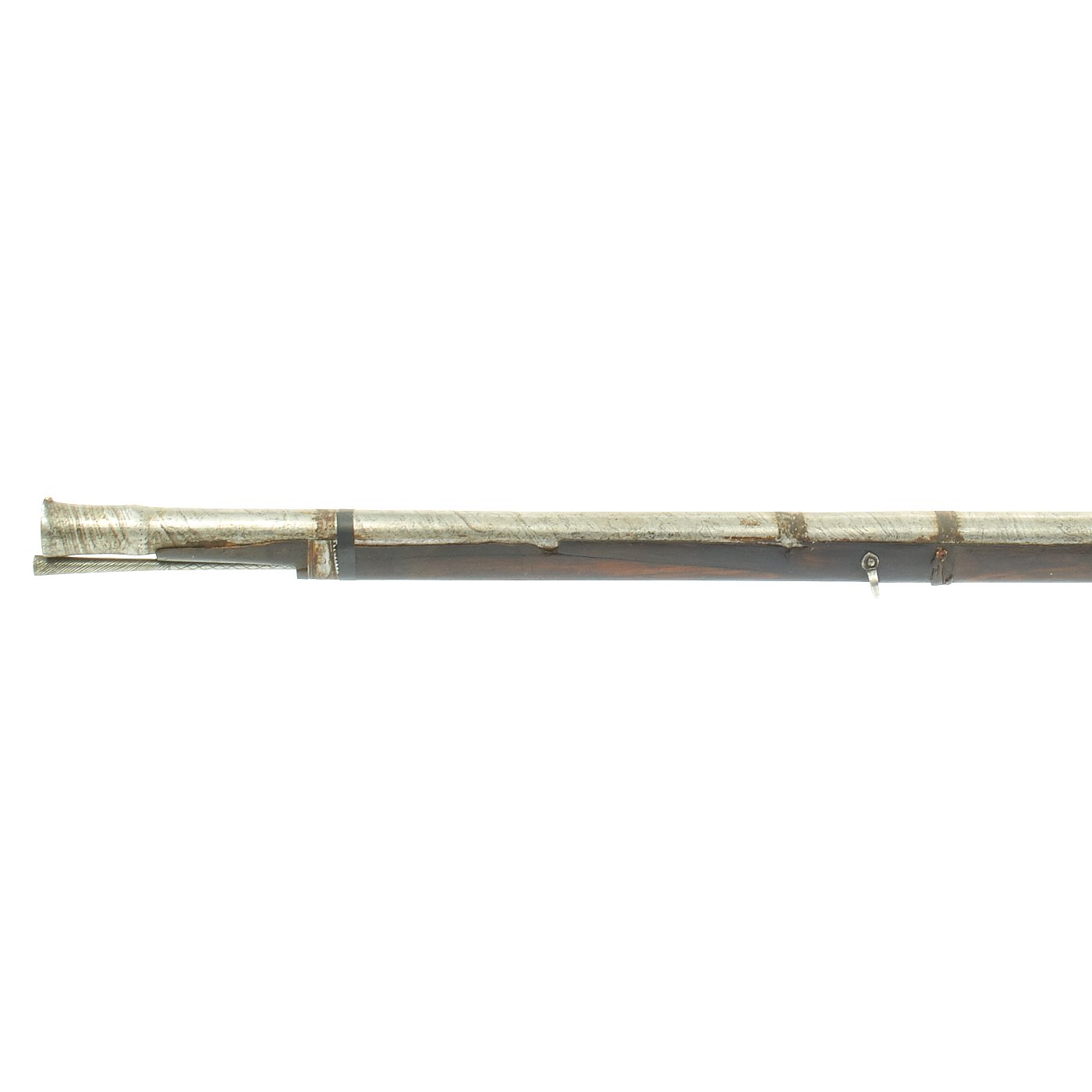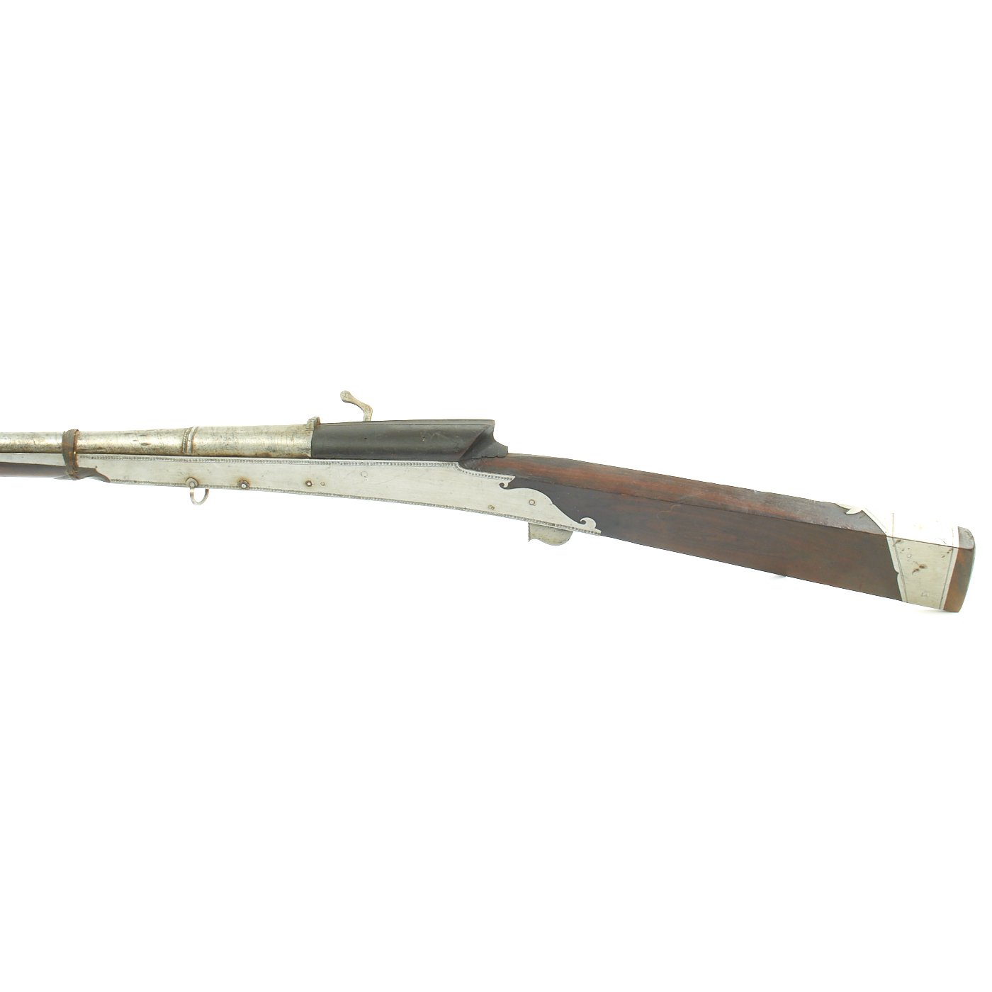 With a bore of around .55", this is a highly maneuverable weapon despite its long length. This example has a slight flare at the muzzle, but we think this to be more for style than anything else. These were always smooth bore, but with such long barrels could in the right hands shoot over considerable distances. The British found this out in the Great Sepoy Rebellion of 1857-1859 better known today as THE INDIAN MUTINY.