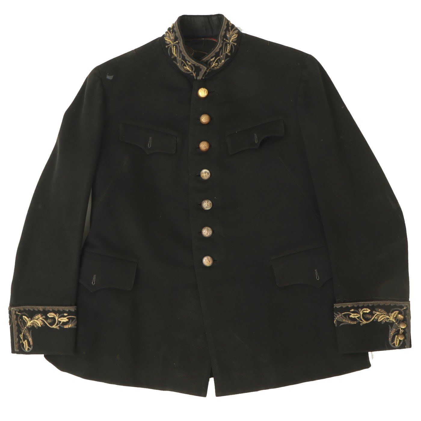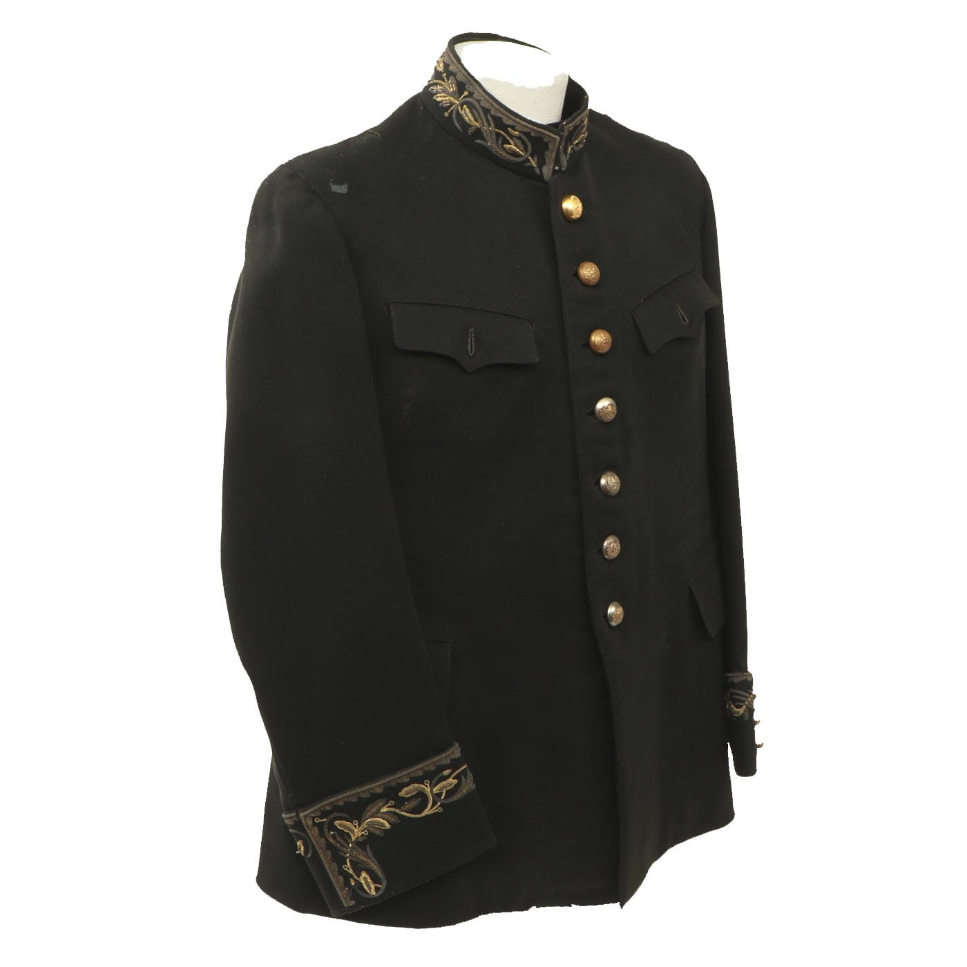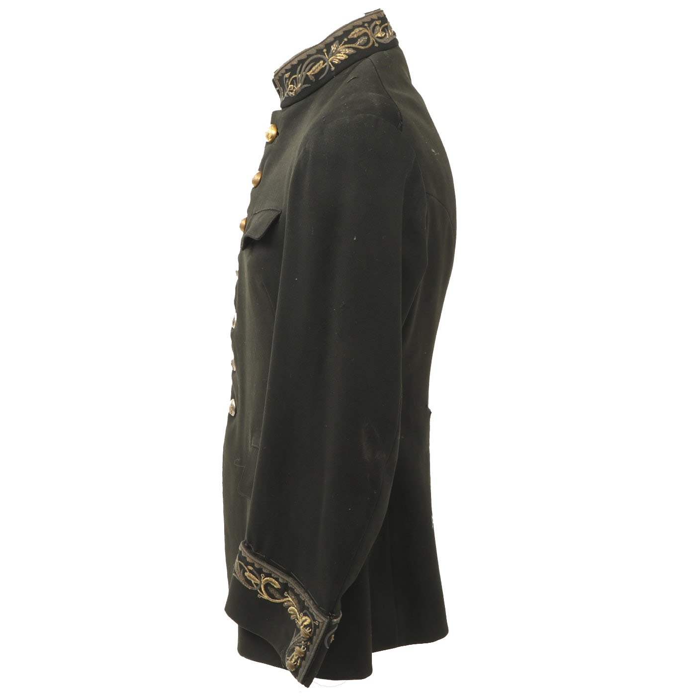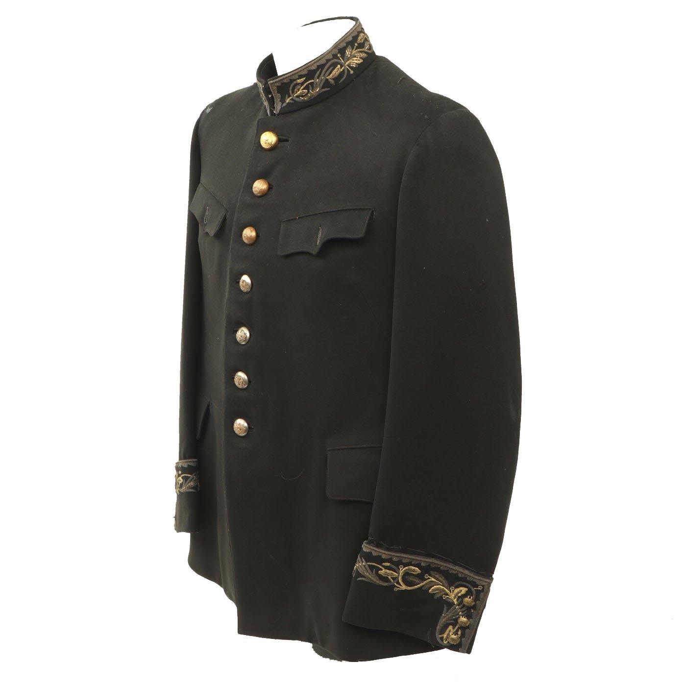 Original Item: Only One Available. This is a Pe World War Two era Mexican Military officer dress coat with tailor label and extensive custom embroidery on the interior lining. It is offered in very good condition.