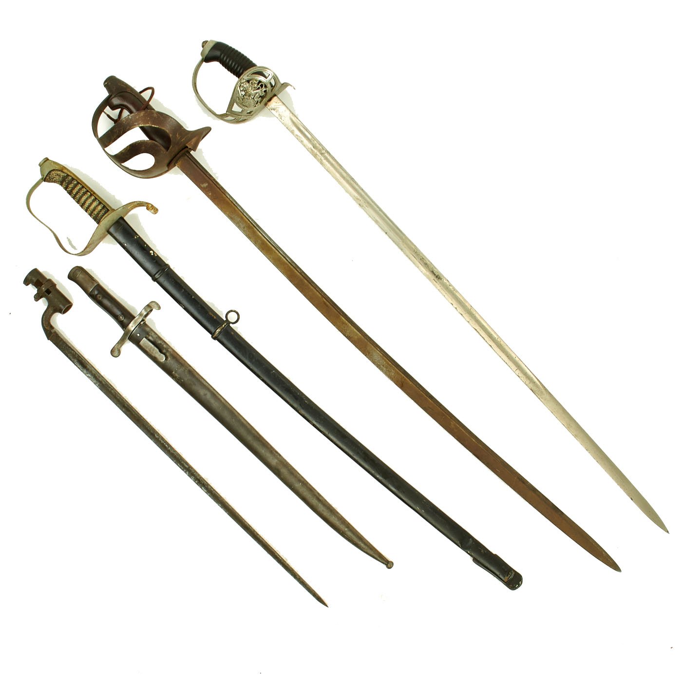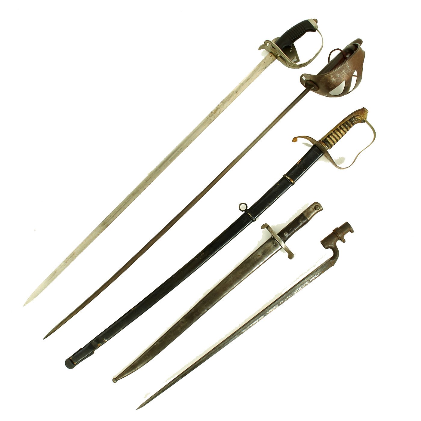 Original Item: One Set of 5 Available. We just received these out of an old collection, untouched for years. As with any collection, there were some items that stood out, and others that were purchased as "projects", either due to condition, or because they were in want of a scabbard. All of these are original items, in varying condition, all offered without their original correct scabbards. They are offered as is, and many are still coated in the original arsenal grease.