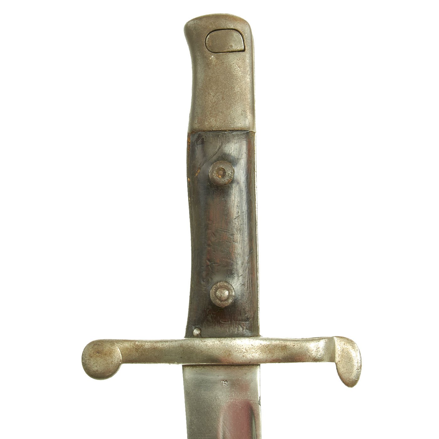 - One Austrian-Made Portuguese M1885 Sword Bayonet for the 8 mm. M1886 Kropatshek rifle (Espingarda de Infantaria 8 mm. m/1886) with scabbard. The spine of the blade is marked Steyr 1886. Blade length is 18 1/2" with an overall length of 23 1/2".