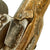 This is a particularly nice example retaining ALL its brass cladding, all complete and simply great. The engraved and embossed designs are lovely, and it has a nice steel faux ramrod under the barrel, as at sea the ramrod was usually carried on a strap around the neck. There are some small openings on the wrist, which is the only place where the wood under the brass can be seen. There are also some nickel or lead nail inlays next to these. The top of the barrel is decorated, though the design is now somewhat worn. Unlike most miquelets we see, the lock on this example is still fully functional! It even can be made to spark!